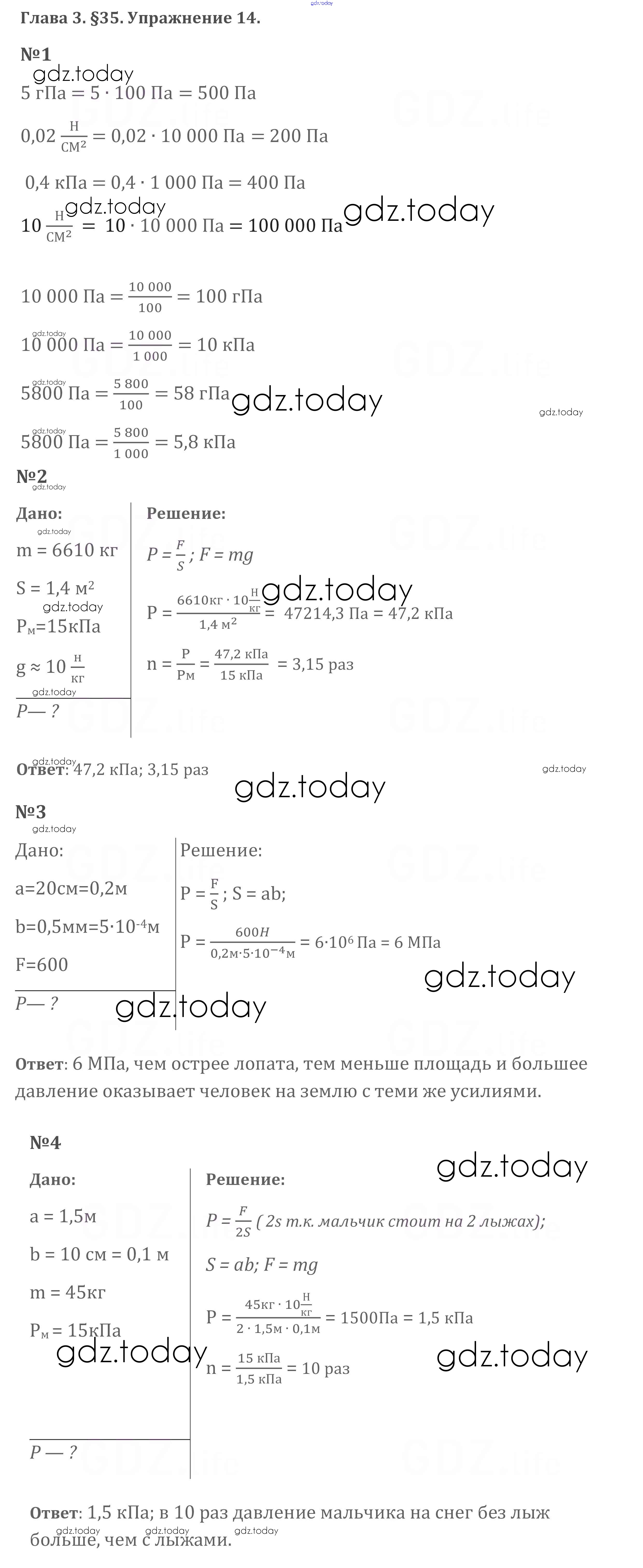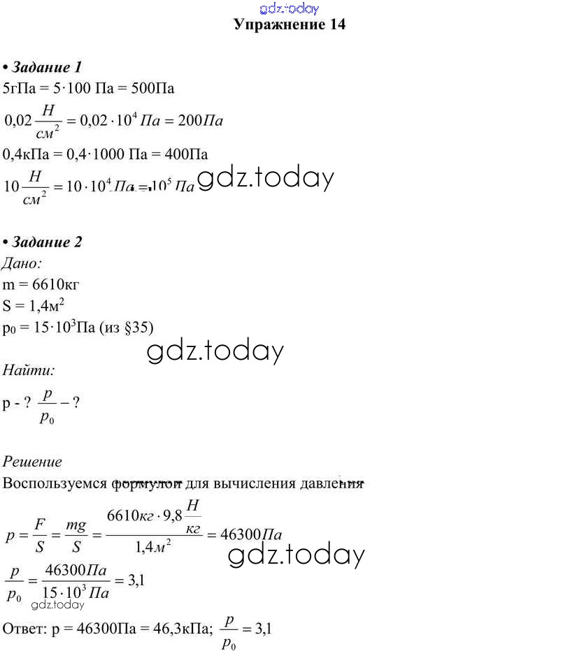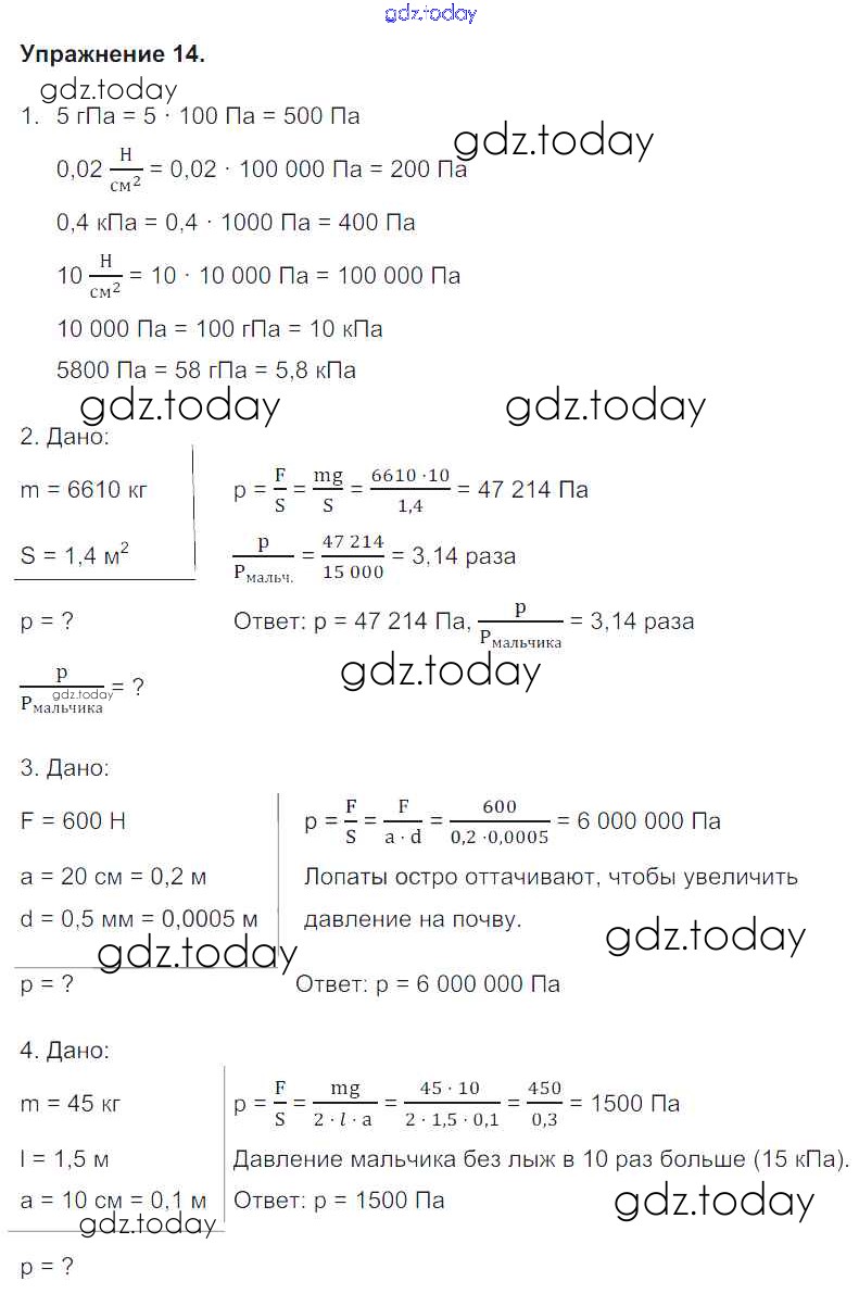 Ответы к Упражнения Решение к новому изданию (бело-красный учебник) 14 Учебнику по Физике для 7 класса Перышкин Дрофа Вертикаль 2016
