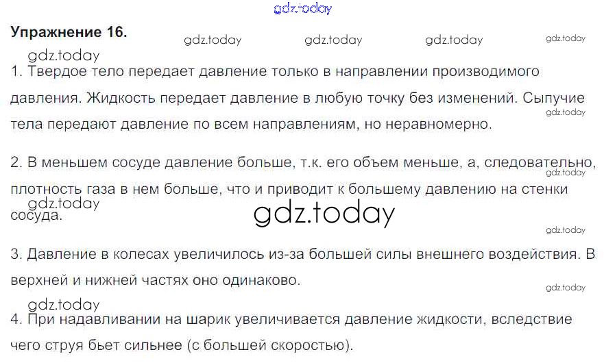 На страницах сайта gdz.today вы найдете учебный и вспомогательный материал, направленный на улучшения знаний школьной программы. ГДЗ - онлайн мир знаний Упражнения Решение к новому изданию (бело-красный учебник) 16 Учебнику по Физике для 7 класса Перышкин Дрофа Вертикаль 2016