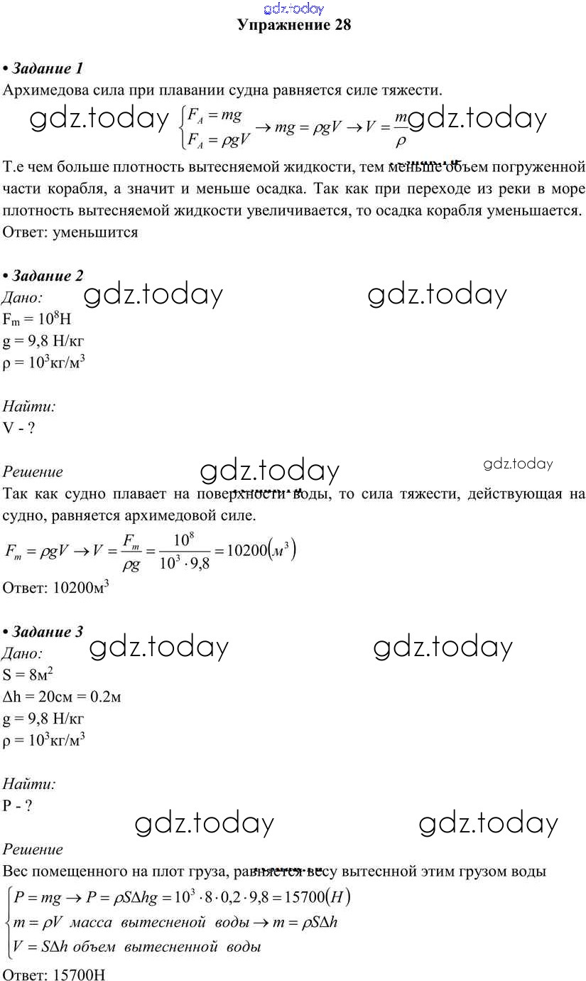 Ответы к Упражнения Решение к новому изданию (бело-красный учебник) 28 Учебнику по Физике для 7 класса Перышкин Дрофа Вертикаль 2016