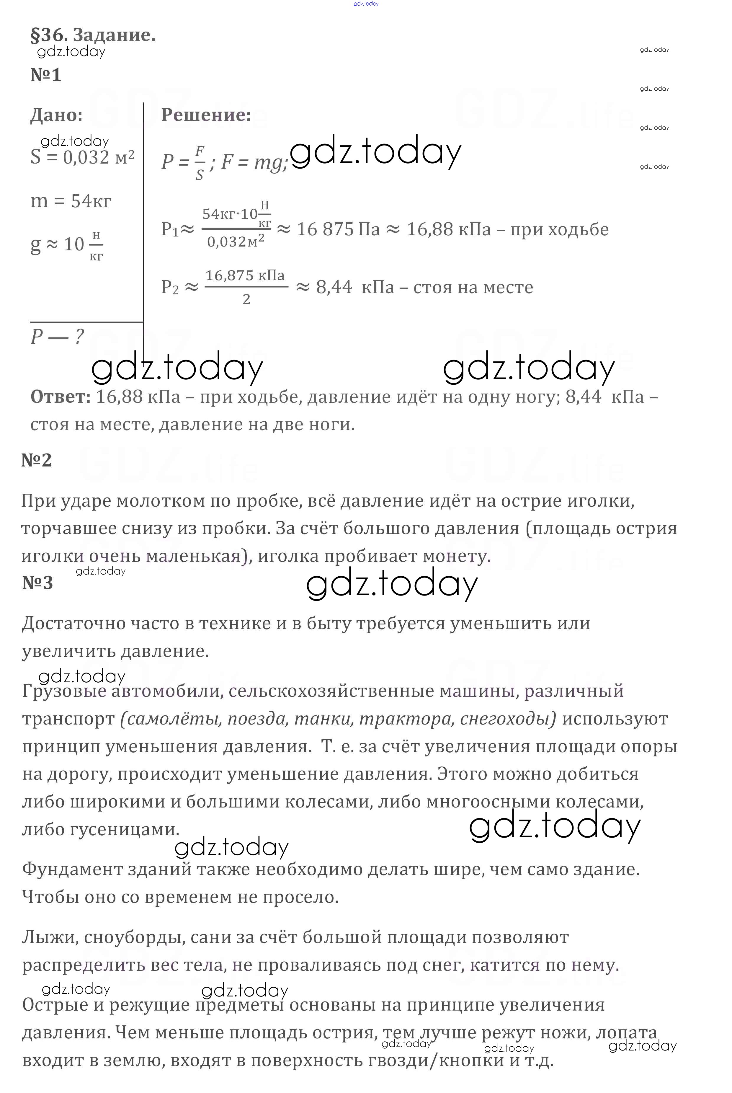Ответы к Задания. Параграфы Решение к новому изданию (бело-красный учебник) §36 Учебнику по Физике для 7 класса Перышкин Дрофа Вертикаль 2016