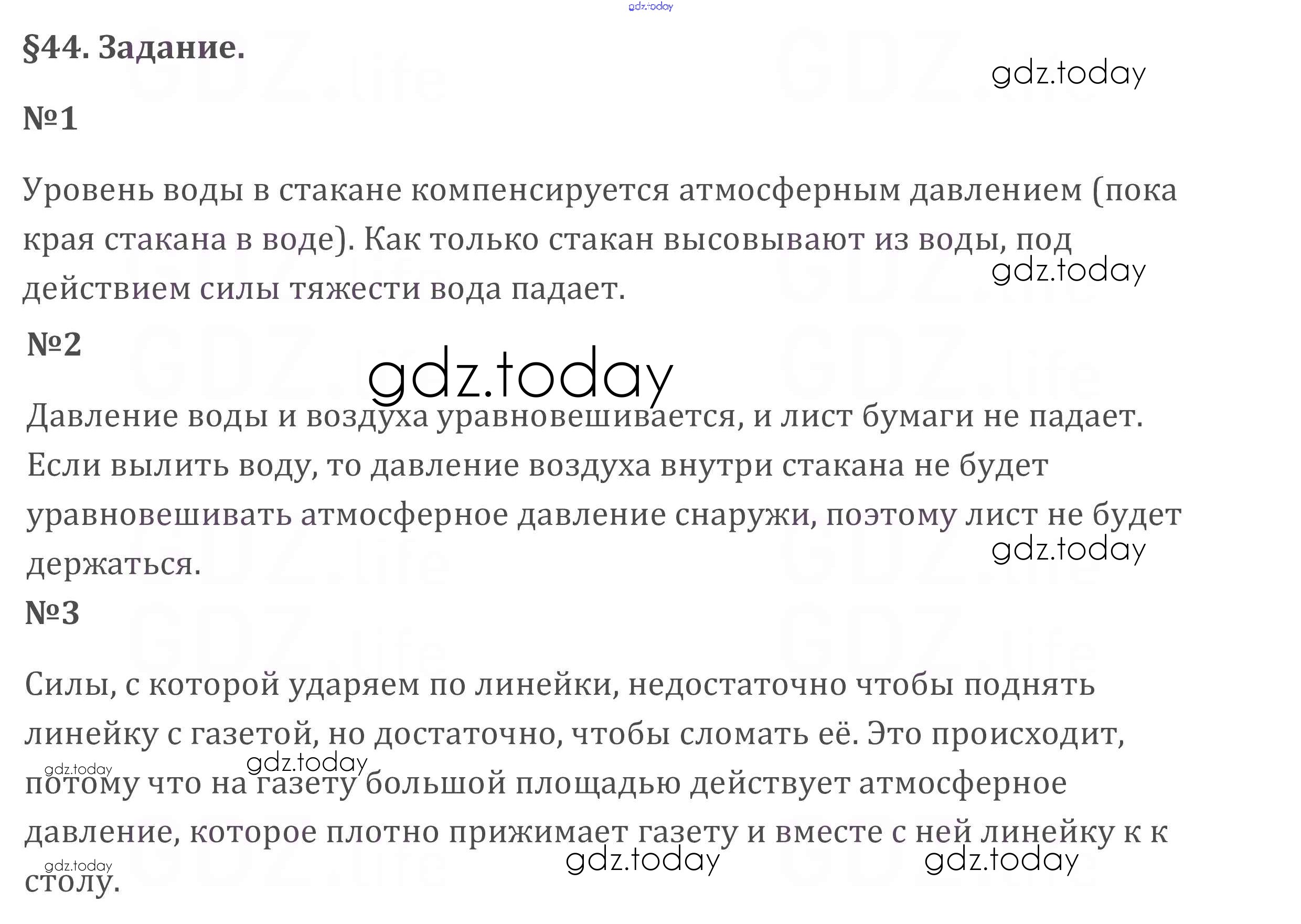 Ответы к Задания. Параграфы Решение к новому изданию (бело-красный учебник) §44 Учебнику по Физике для 7 класса Перышкин Дрофа Вертикаль 2016