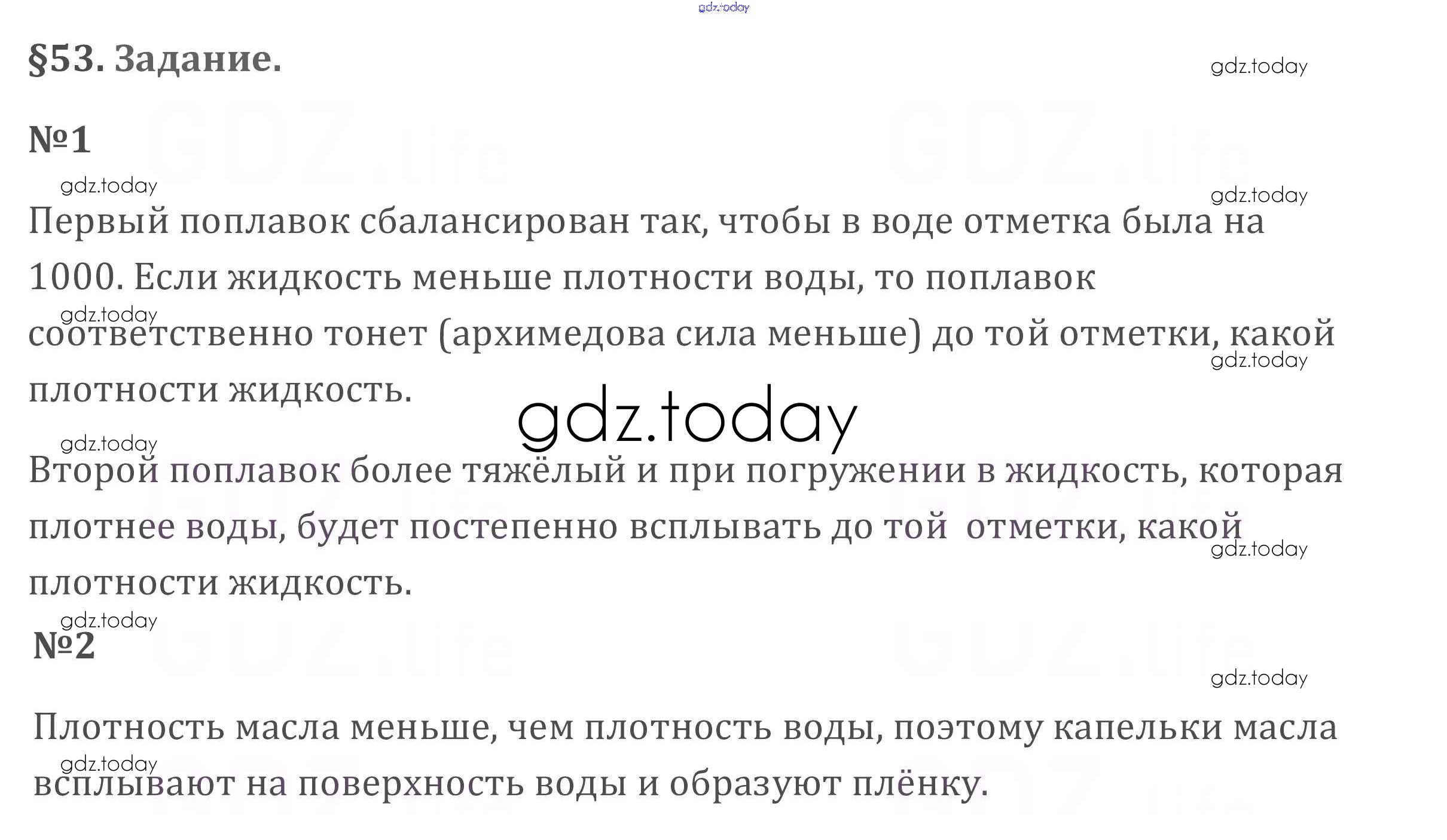 Ответы к Задания. Параграфы Решение к новому изданию (бело-красный учебник) §53 Учебнику по Физике для 7 класса Перышкин Дрофа Вертикаль 2016