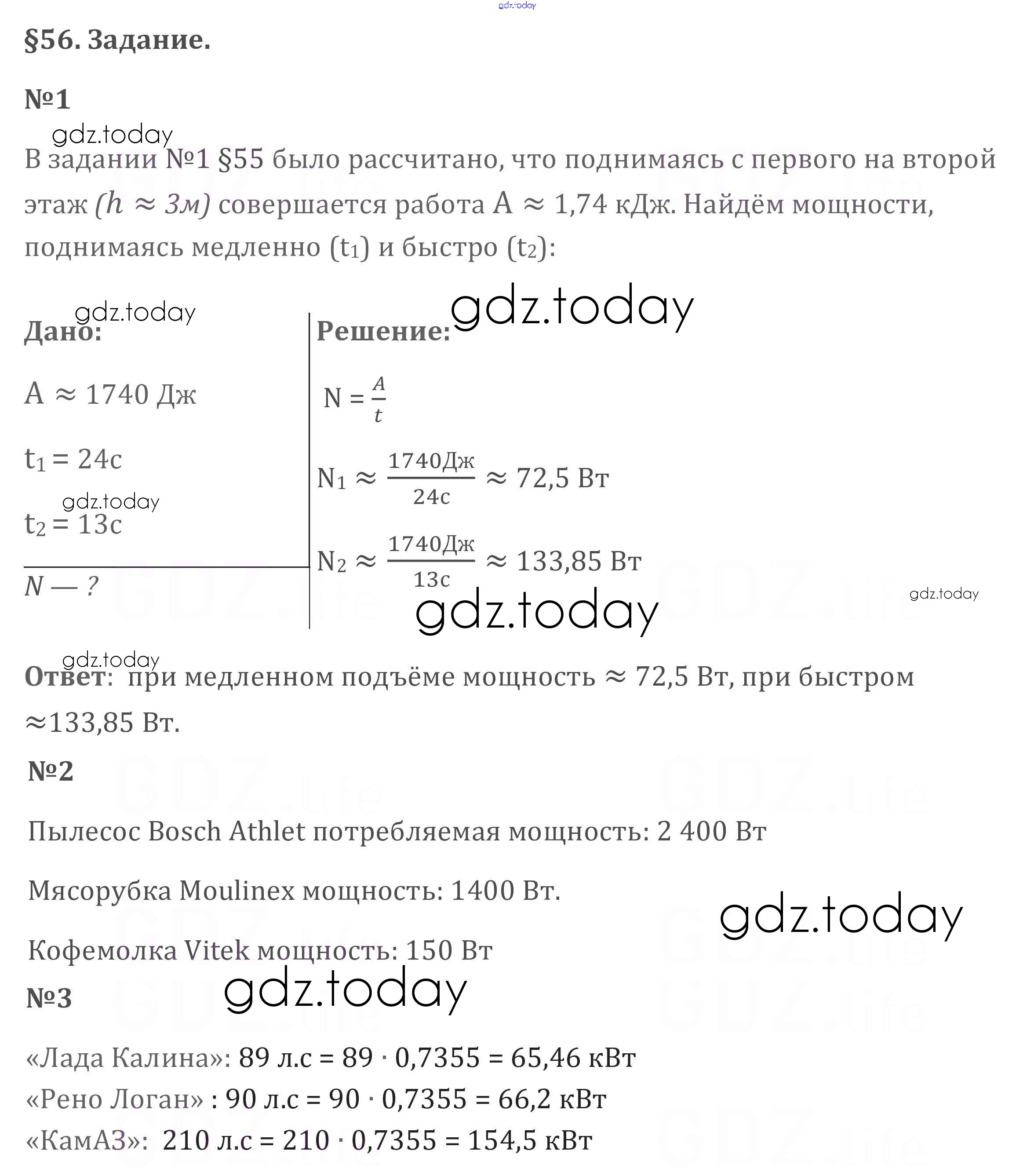Ответы к Задания. Параграфы Решение к новому изданию (бело-красный учебник) §56 Учебнику по Физике для 7 класса Перышкин Дрофа Вертикаль 2016