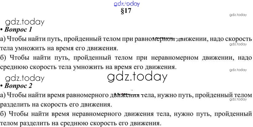 На страницах сайта gdz.today вы найдете учебный и вспомогательный материал, направленный на улучшения знаний школьной программы. ГДЗ - онлайн мир знаний Вопросы. Параграфы Решение к новому изданию (бело-красный учебник) §17 Учебнику по Физике для 7 класса Перышкин Дрофа Вертикаль 2016