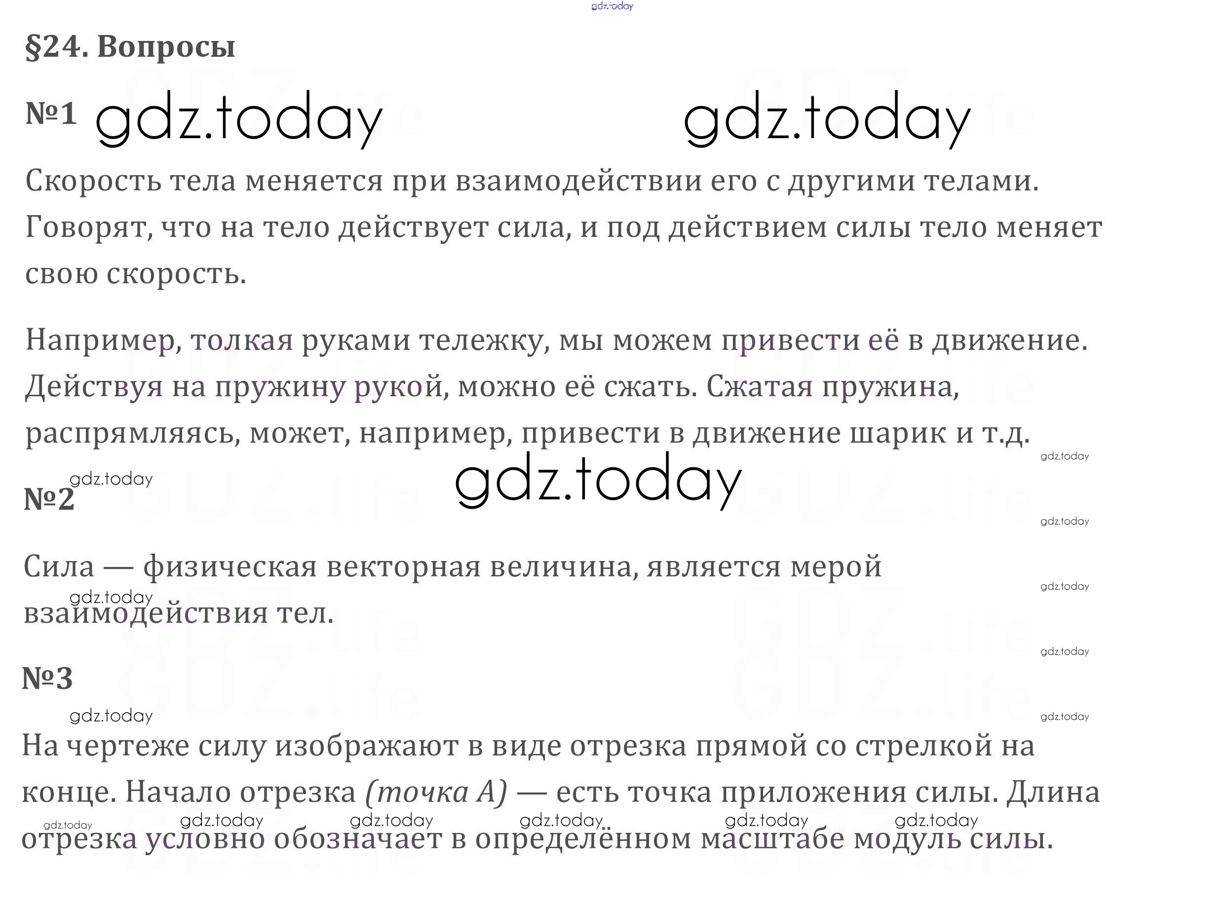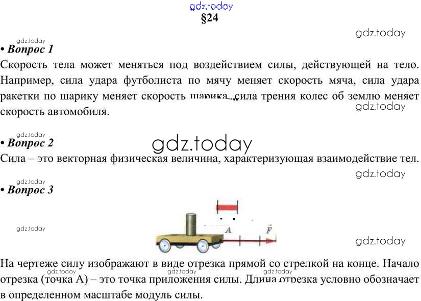 На страницах сайта gdz.today вы найдете учебный и вспомогательный материал, направленный на улучшения знаний школьной программы. ГДЗ - онлайн мир знаний Вопросы. Параграфы Решение к новому изданию (бело-красный учебник) §24 Учебнику по Физике для 7 класса Перышкин Дрофа Вертикаль 2016