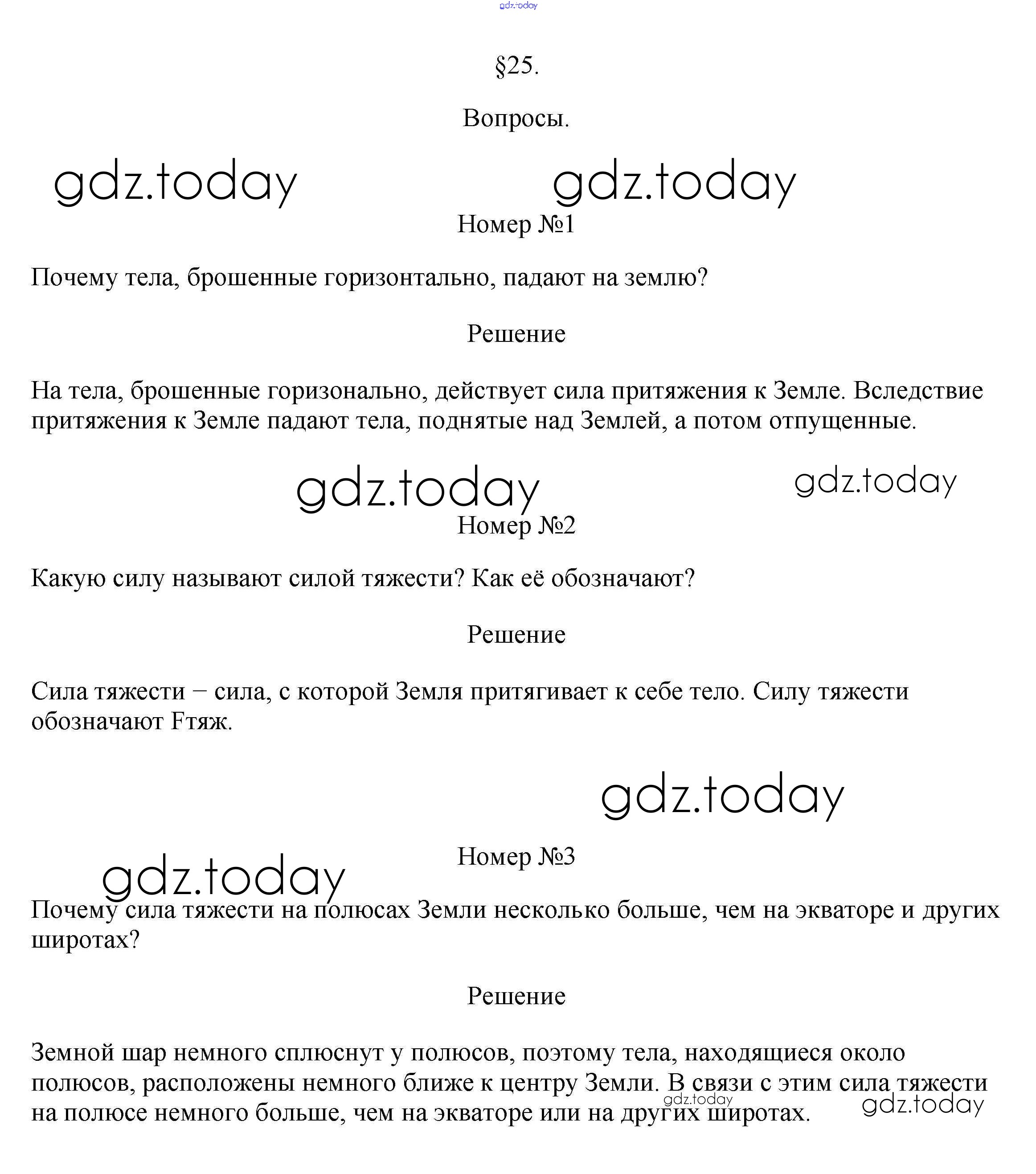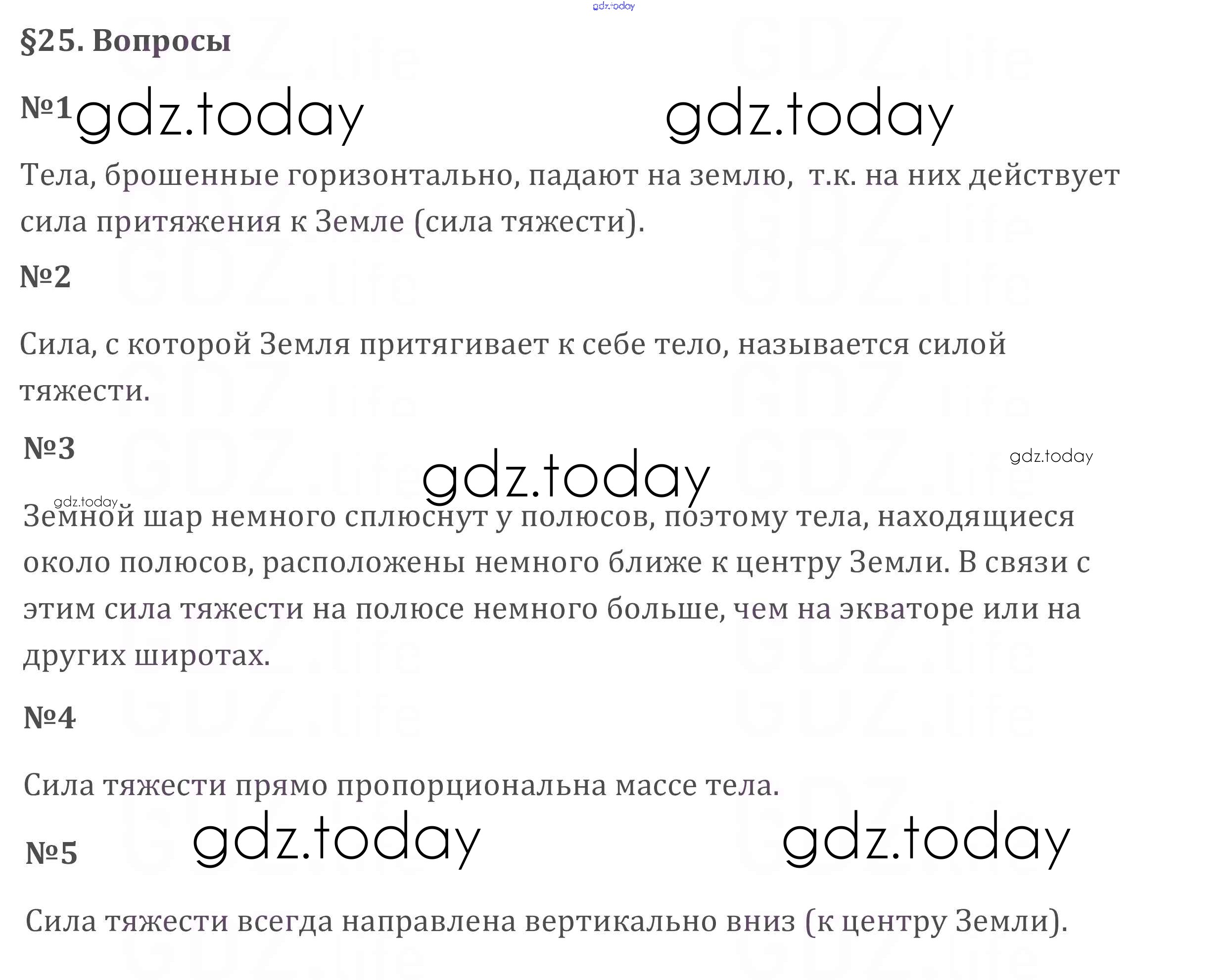 Ответы к Вопросы. Параграфы Решение к новому изданию (бело-красный учебник) §25 Учебнику по Физике для 7 класса Перышкин Дрофа Вертикаль 2016