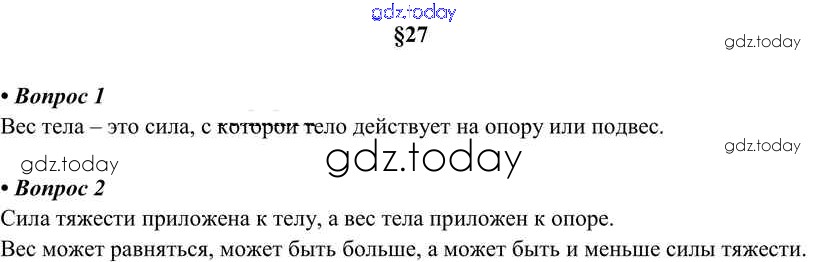 На страницах сайта gdz.today вы найдете учебный и вспомогательный материал, направленный на улучшения знаний школьной программы. ГДЗ - онлайн мир знаний Вопросы. Параграфы Решение к новому изданию (бело-красный учебник) §27 Учебнику по Физике для 7 класса Перышкин Дрофа Вертикаль 2016