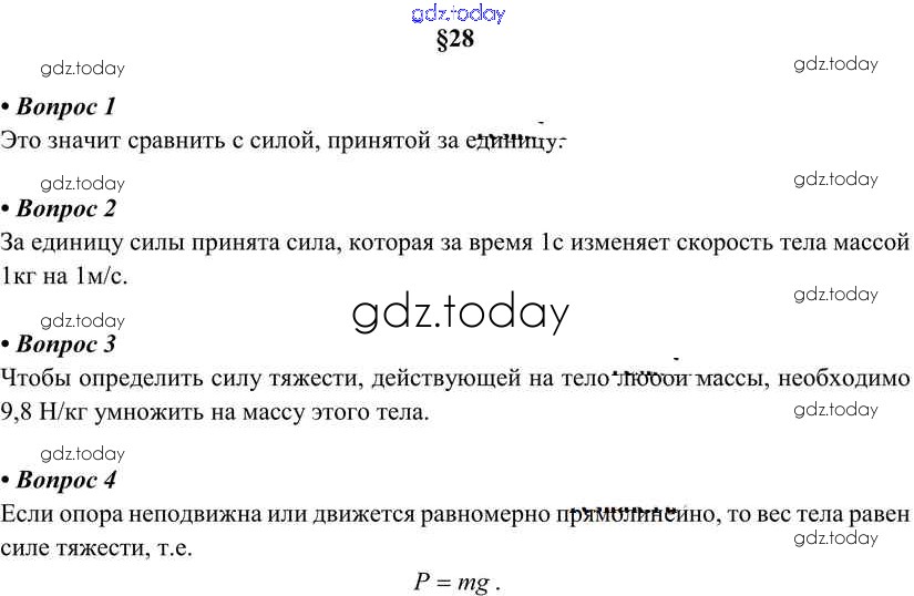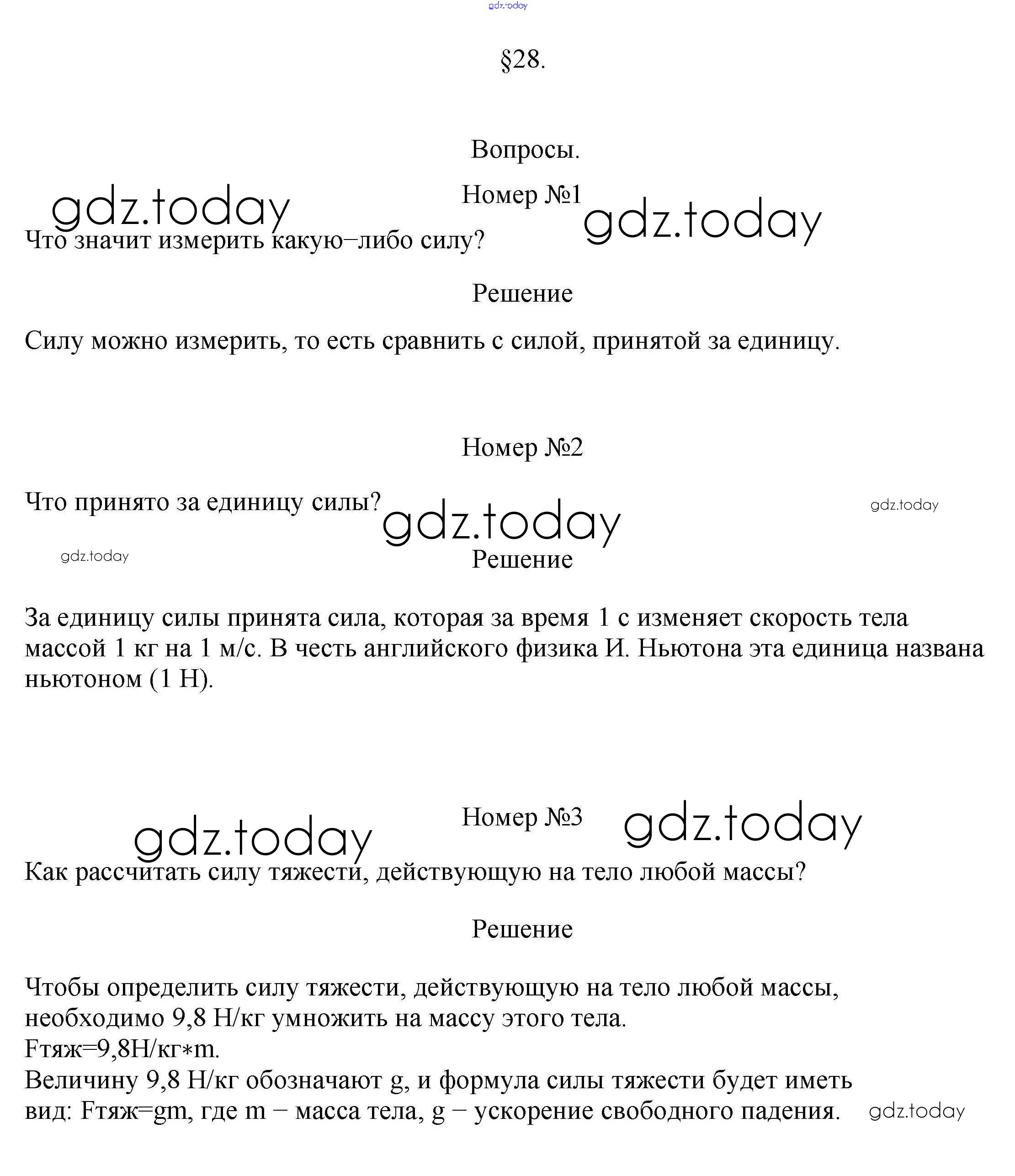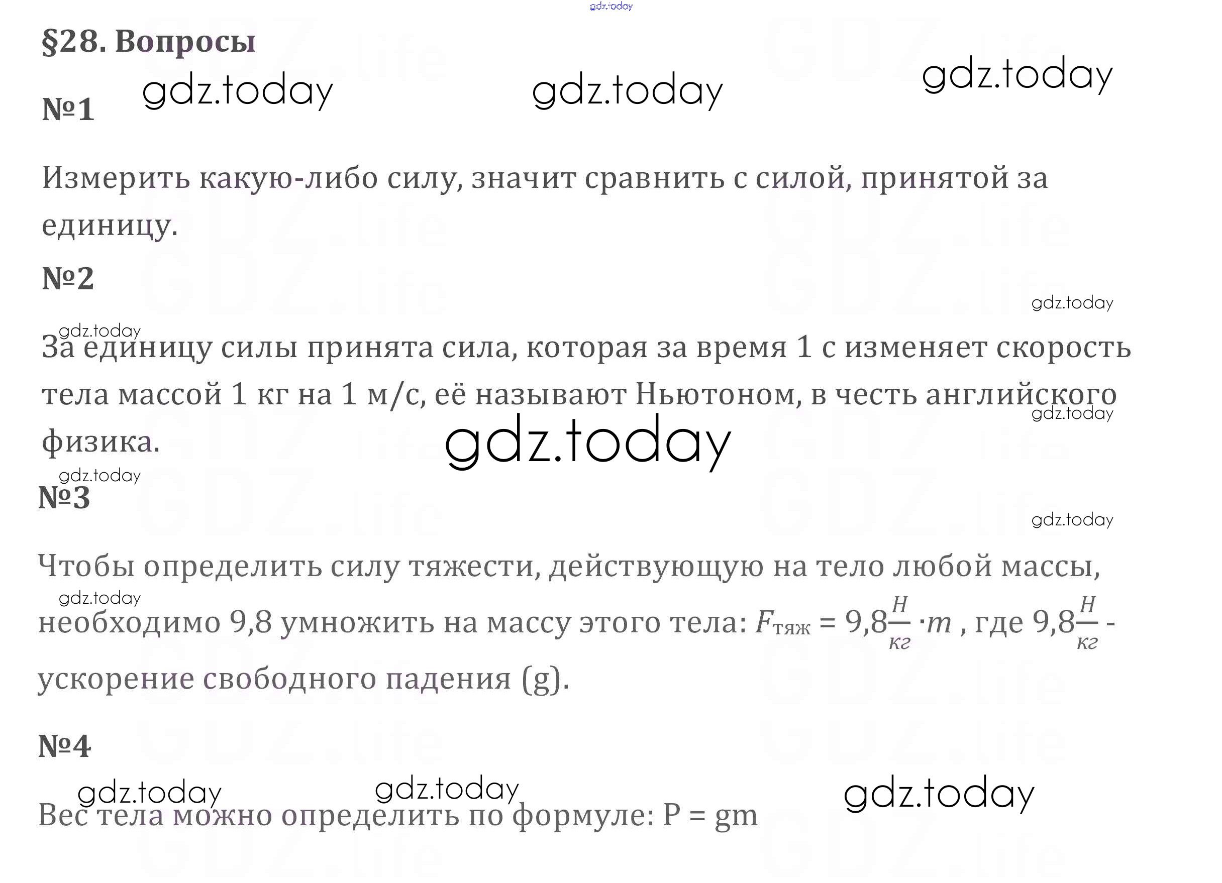 Ответы к Вопросы. Параграфы Решение к новому изданию (бело-красный учебник) §28 Учебнику по Физике для 7 класса Перышкин Дрофа Вертикаль 2016