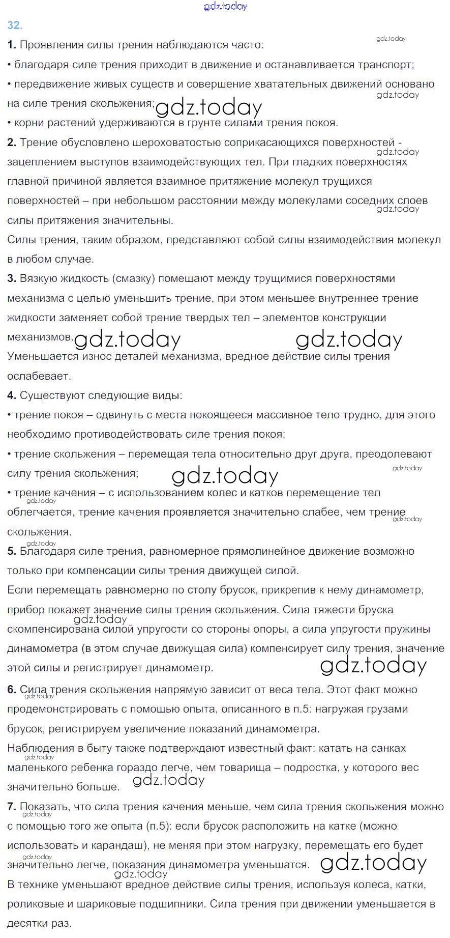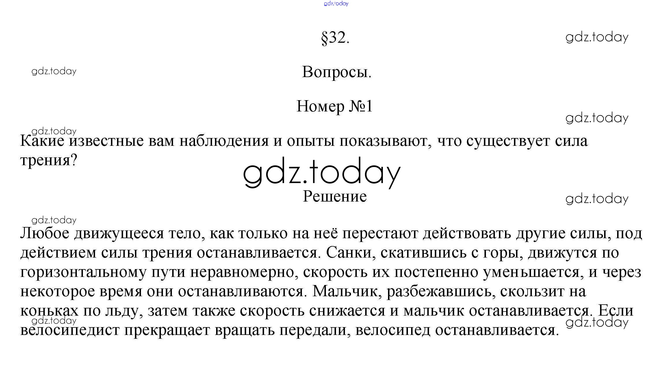 Ответы к Вопросы. Параграфы Решение к новому изданию (бело-красный учебник) §32 Учебнику по Физике для 7 класса Перышкин Дрофа Вертикаль 2016