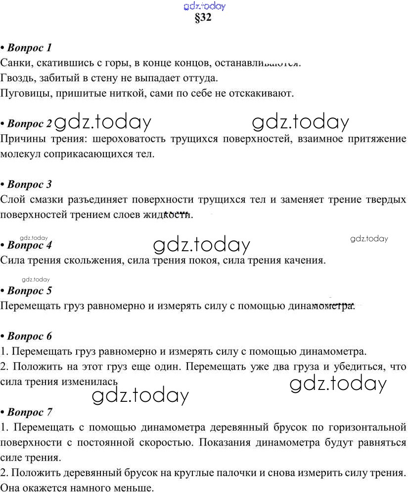 На страницах сайта gdz.today вы найдете учебный и вспомогательный материал, направленный на улучшения знаний школьной программы. ГДЗ - онлайн мир знаний Вопросы. Параграфы Решение к новому изданию (бело-красный учебник) §32 Учебнику по Физике для 7 класса Перышкин Дрофа Вертикаль 2016
