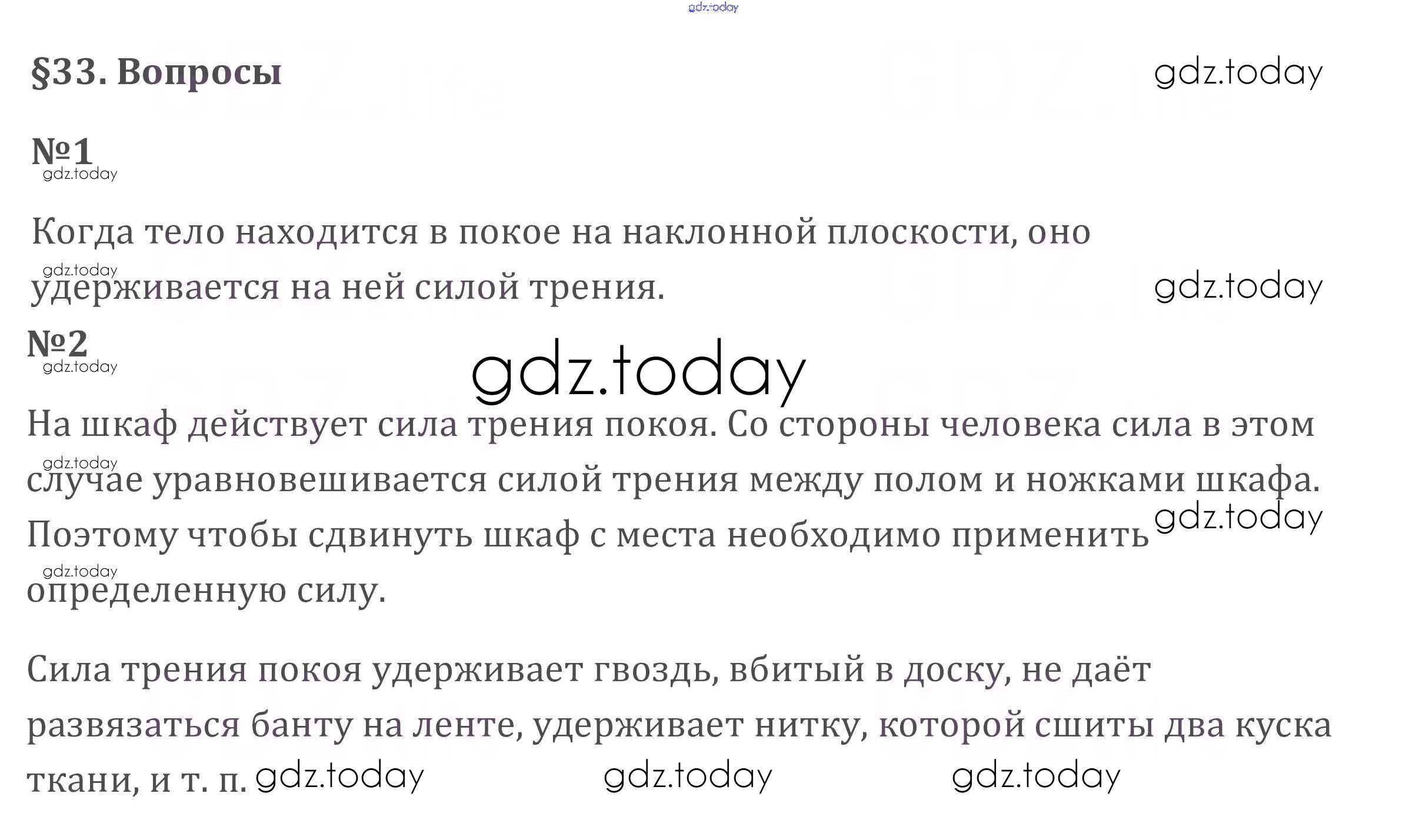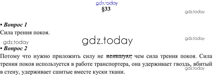 На страницах сайта gdz.today вы найдете учебный и вспомогательный материал, направленный на улучшения знаний школьной программы. ГДЗ - онлайн мир знаний Вопросы. Параграфы Решение к новому изданию (бело-красный учебник) §33 Учебнику по Физике для 7 класса Перышкин Дрофа Вертикаль 2016