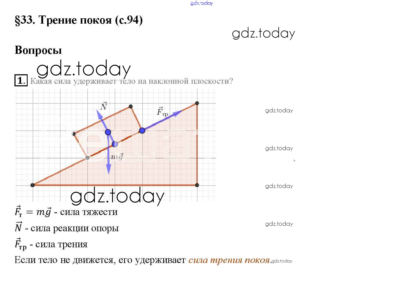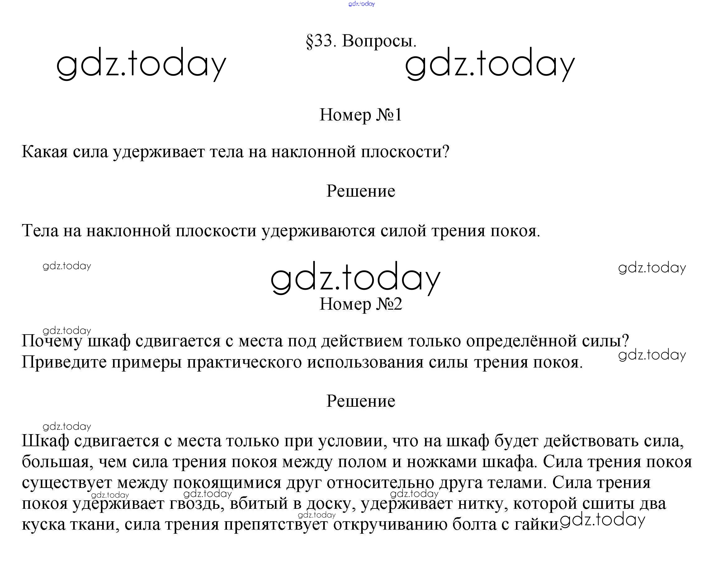 Ответы к Вопросы. Параграфы Решение к новому изданию (бело-красный учебник) §33 Учебнику по Физике для 7 класса Перышкин Дрофа Вертикаль 2016