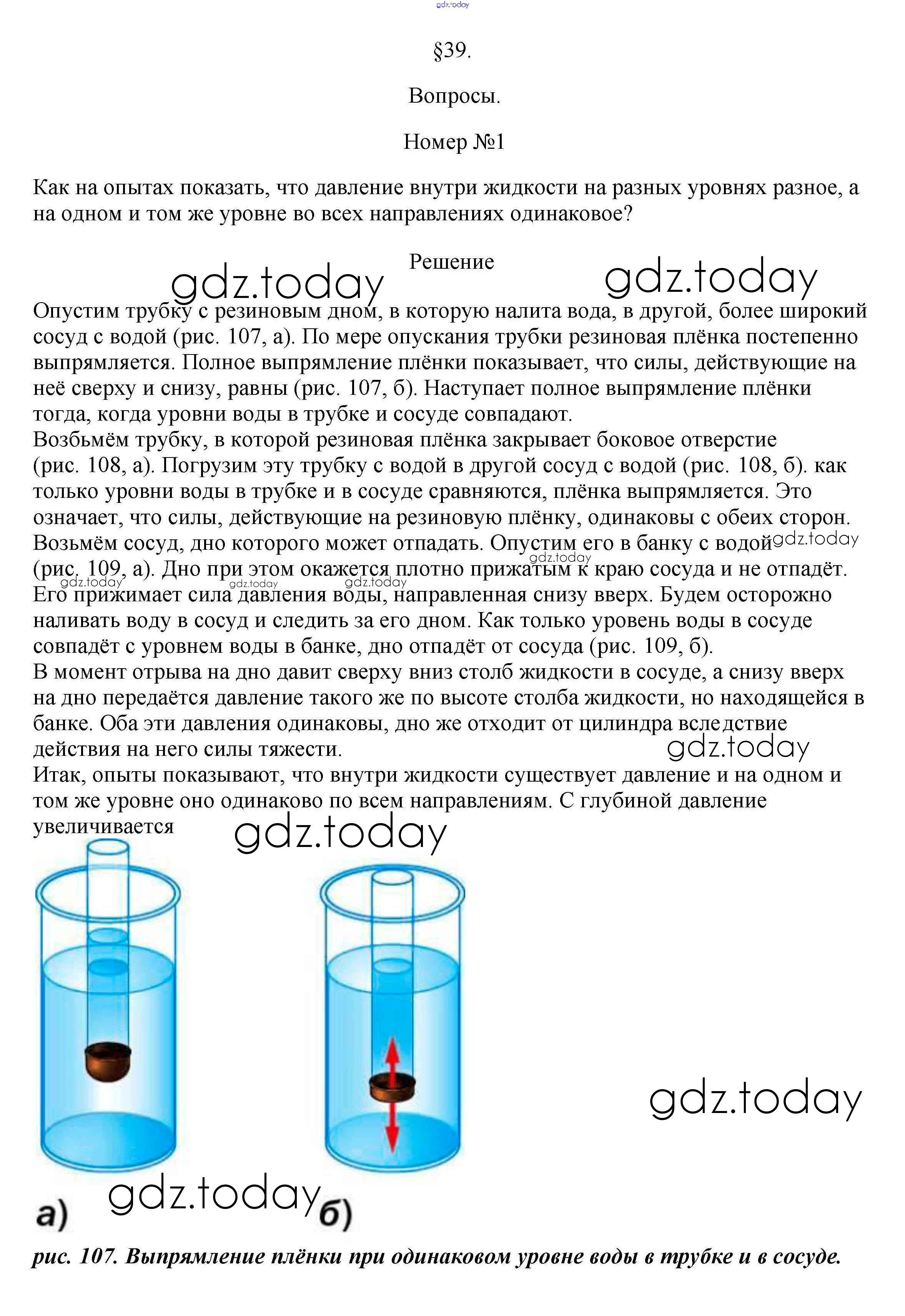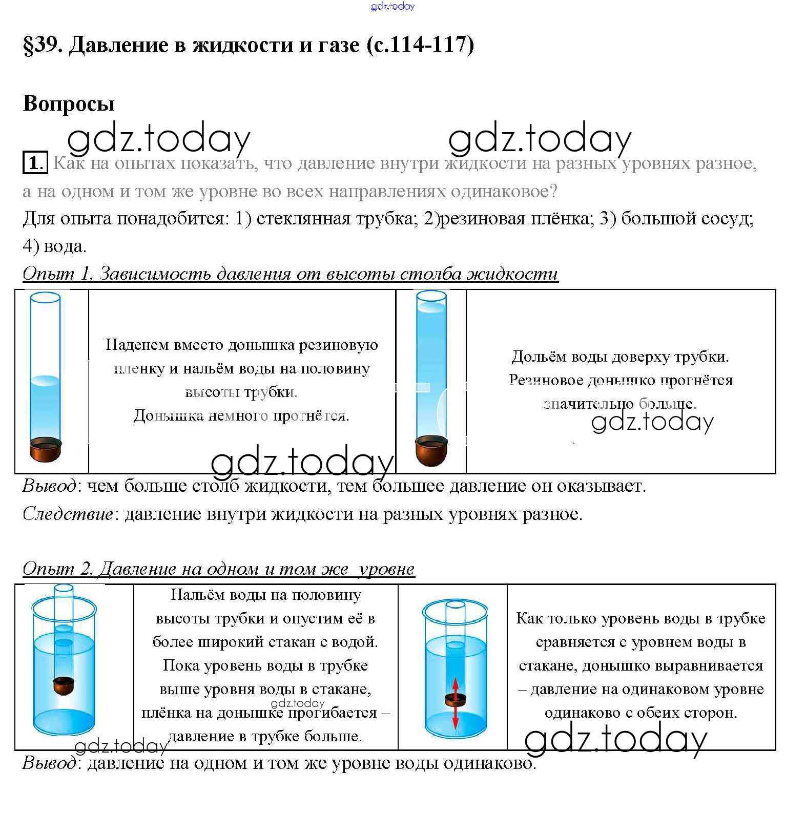 Ответы к Вопросы. Параграфы Решение к новому изданию (бело-красный учебник) §39 Учебнику по Физике для 7 класса Перышкин Дрофа Вертикаль 2016