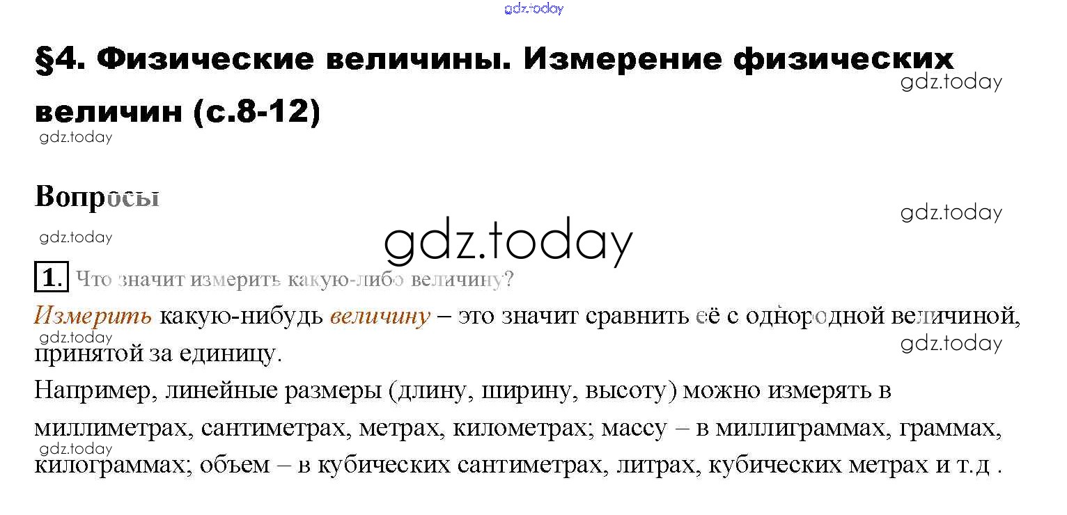 Ответы к Вопросы. Параграфы Решение к новому изданию (бело-красный учебник) §4 Учебнику по Физике для 7 класса Перышкин Дрофа Вертикаль 2016