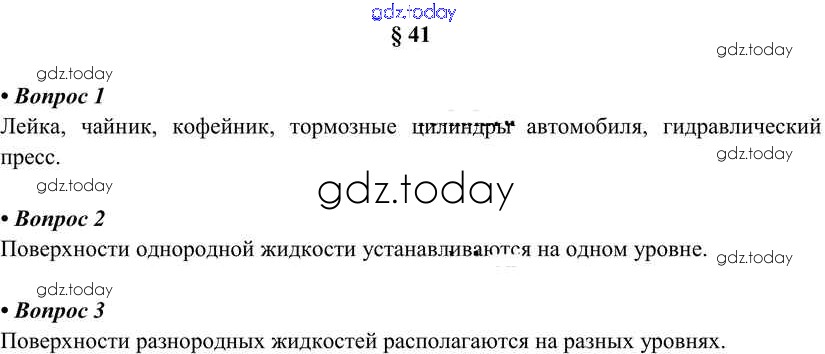 Ответы к Вопросы. Параграфы Решение к новому изданию (бело-красный учебник) §41 Учебнику по Физике для 7 класса Перышкин Дрофа Вертикаль 2016