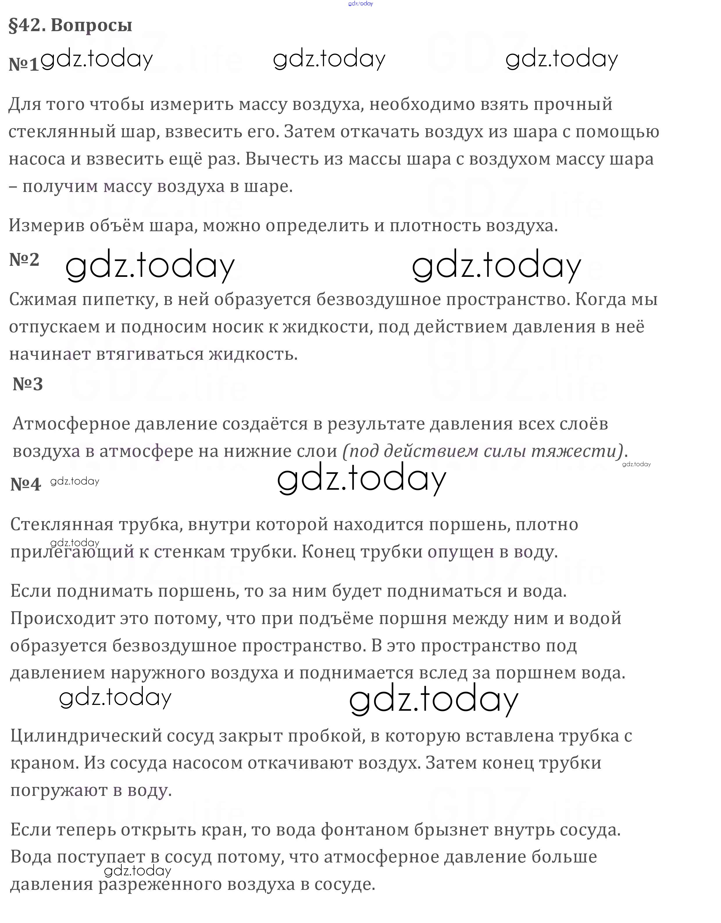 Ответы к Вопросы. Параграфы Решение к новому изданию (бело-красный учебник) §42 Учебнику по Физике для 7 класса Перышкин Дрофа Вертикаль 2016