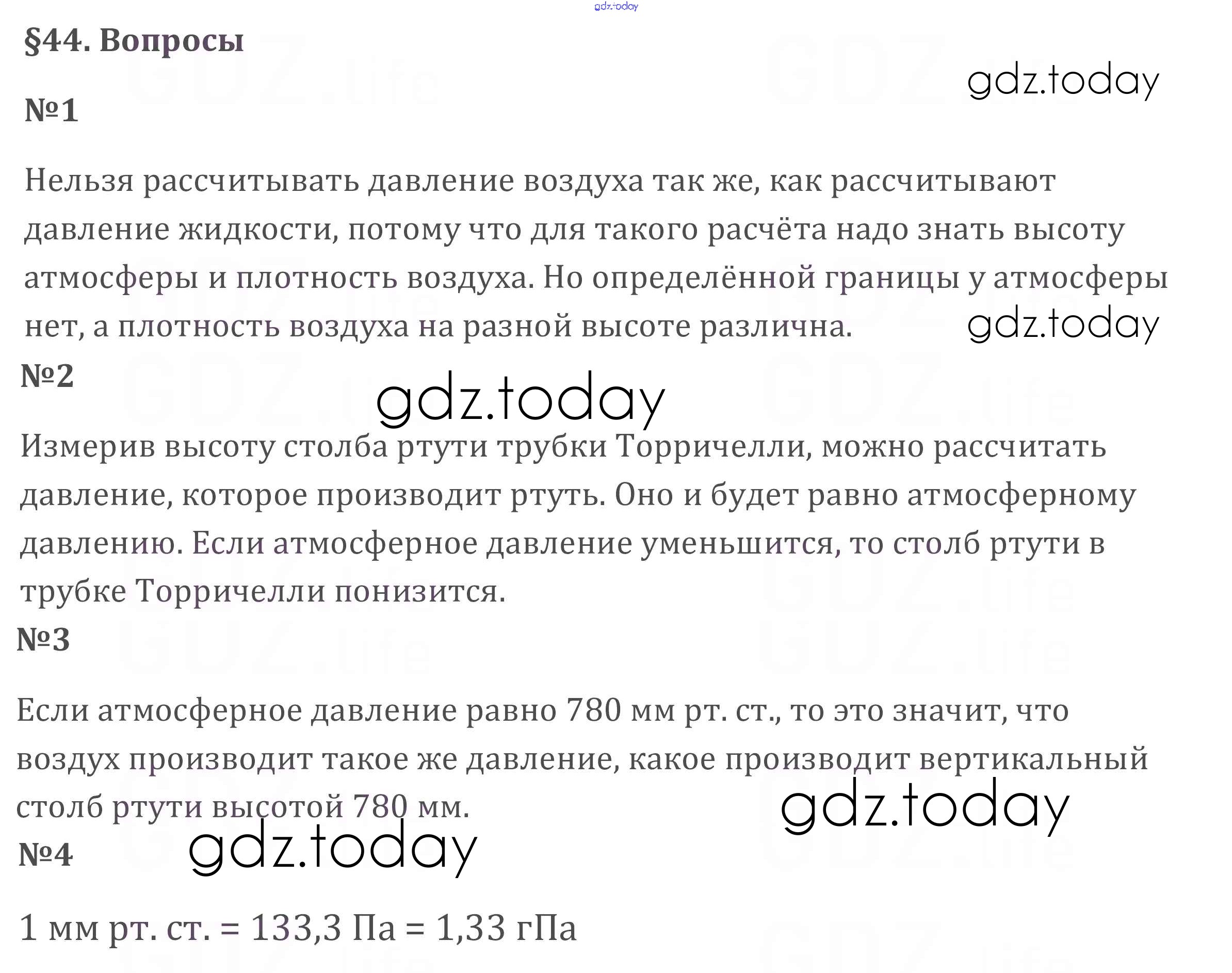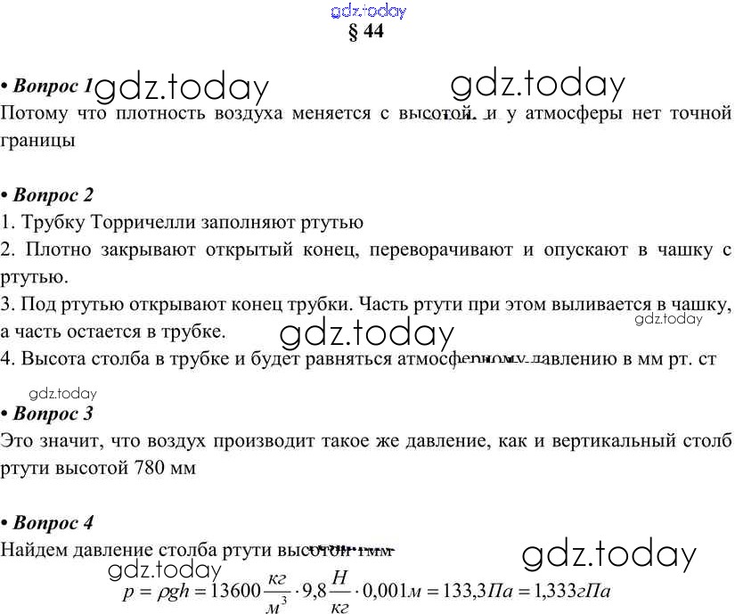 Ответы к Вопросы. Параграфы Решение к новому изданию (бело-красный учебник) §44 Учебнику по Физике для 7 класса Перышкин Дрофа Вертикаль 2016