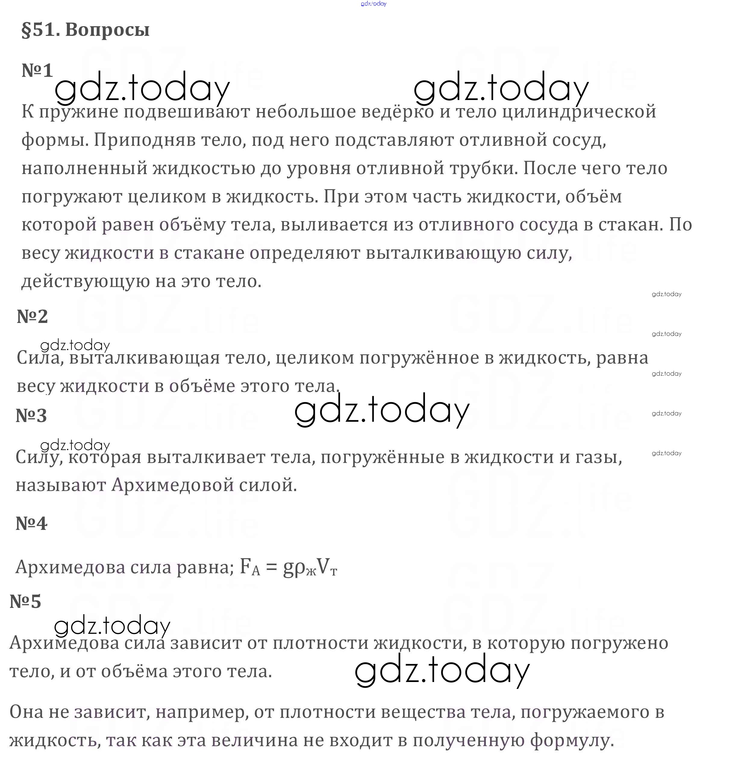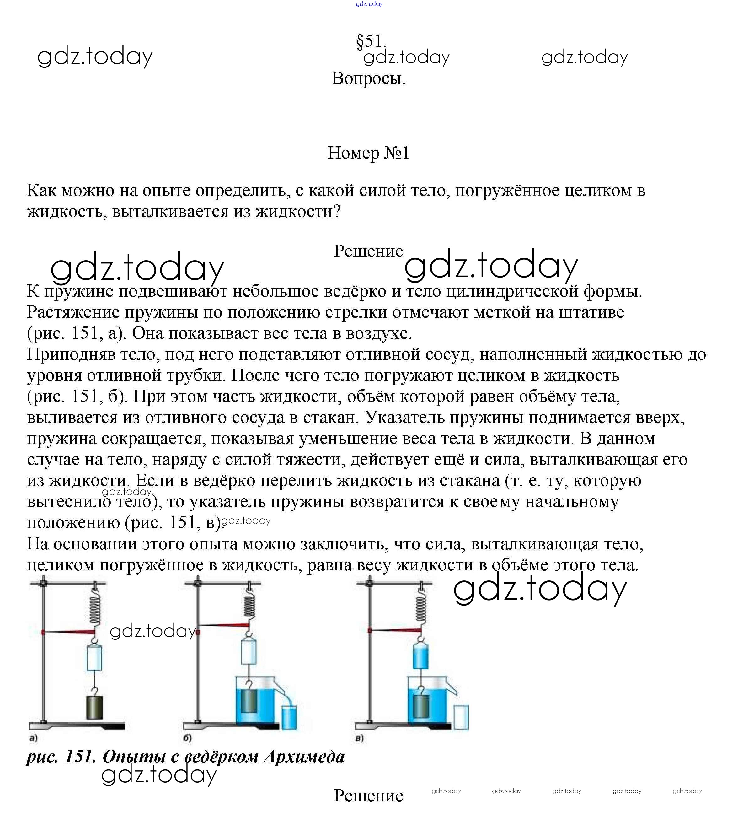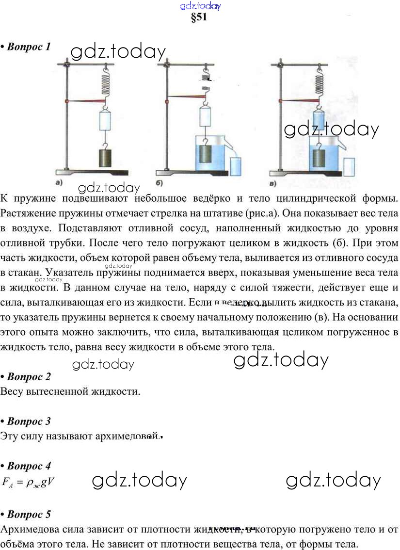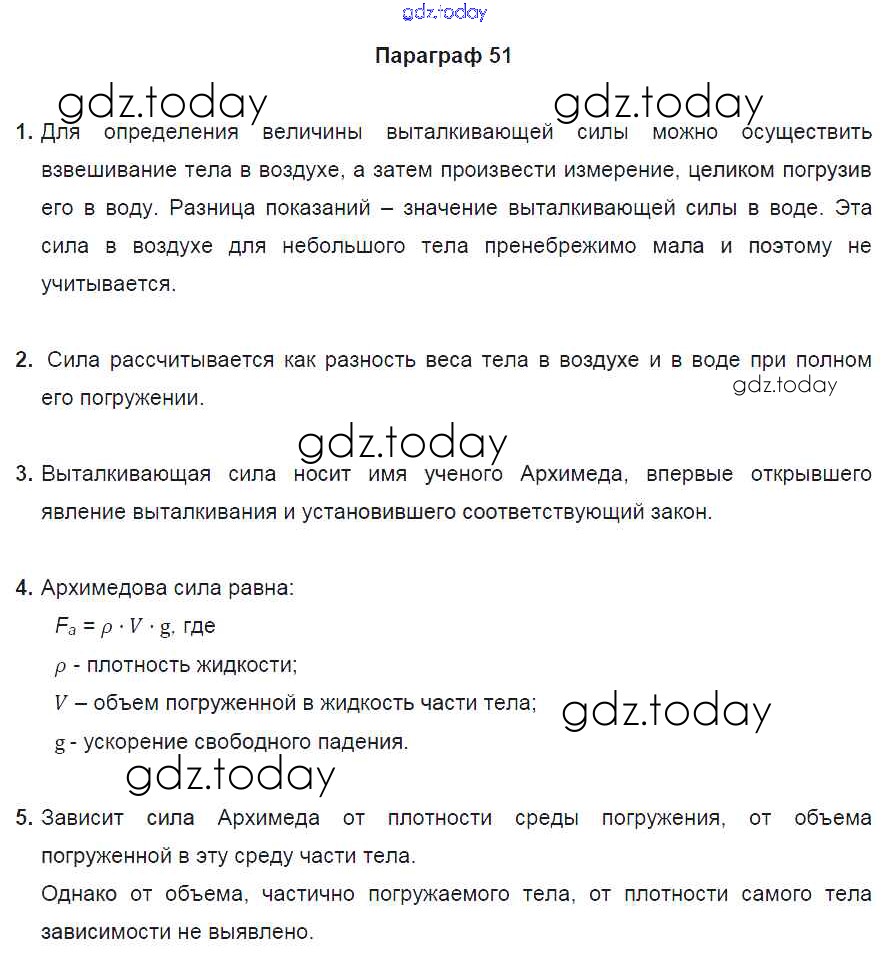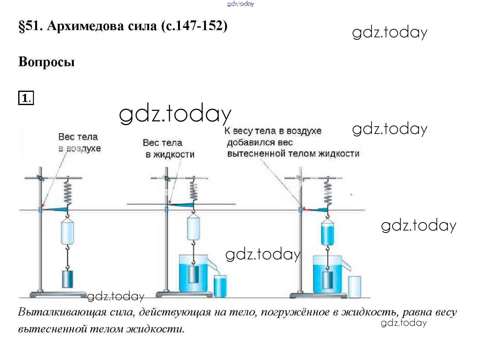Ответы к Вопросы. Параграфы Решение к новому изданию (бело-красный учебник) §51 Учебнику по Физике для 7 класса Перышкин Дрофа Вертикаль 2016