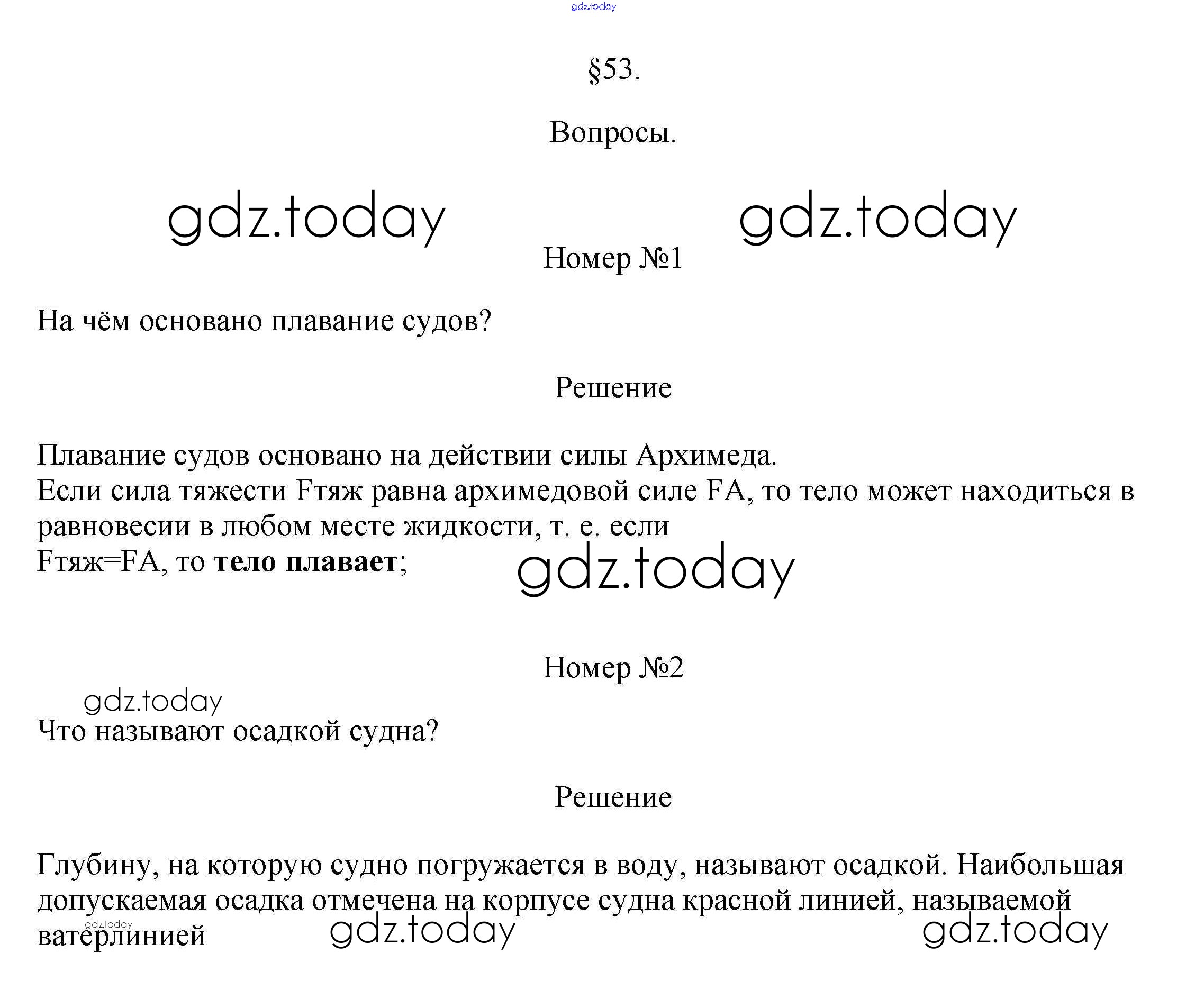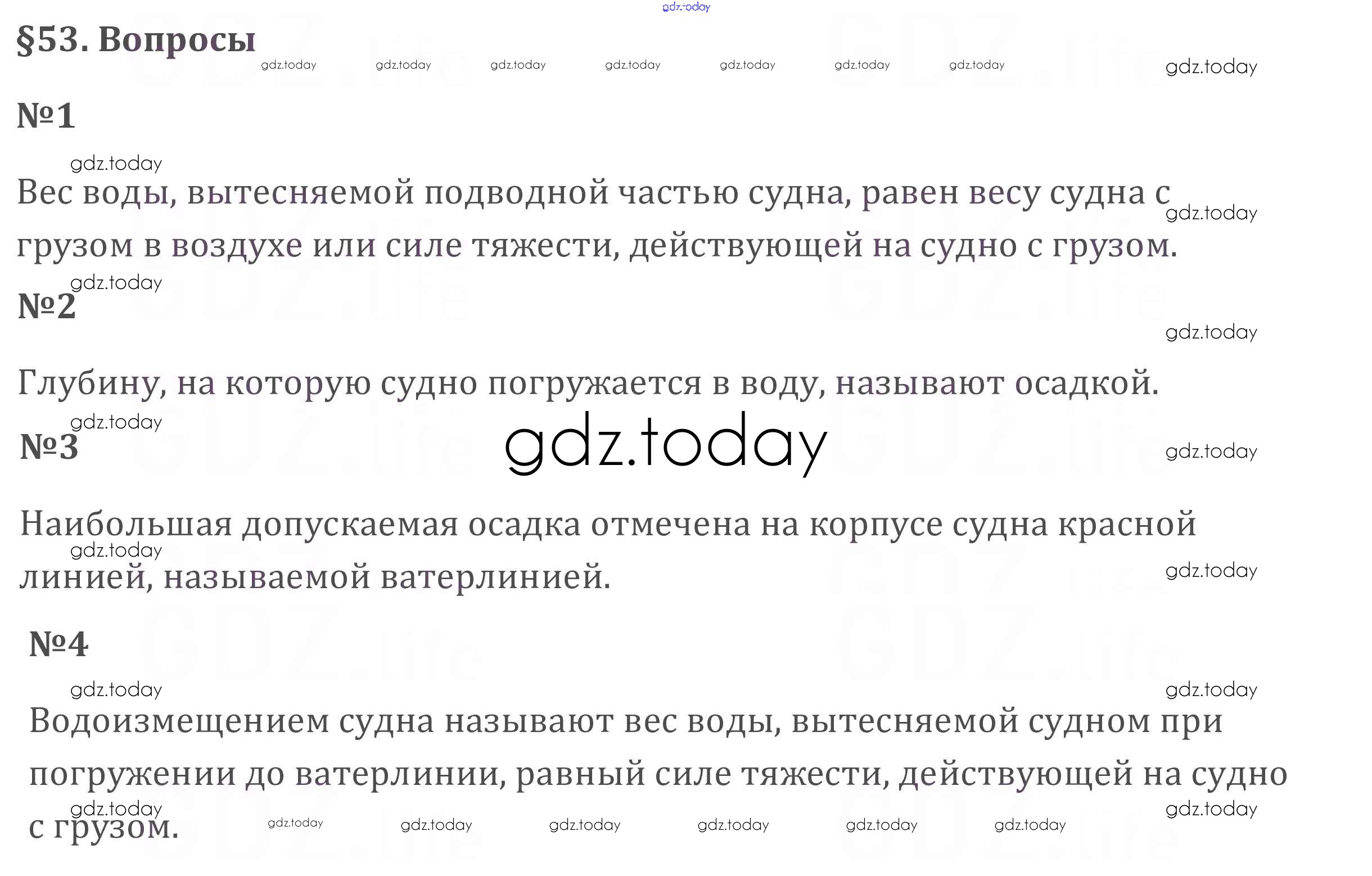 Ответы к Вопросы. Параграфы Решение к новому изданию (бело-красный учебник) §53 Учебнику по Физике для 7 класса Перышкин Дрофа Вертикаль 2016