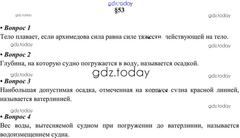 На страницах сайта gdz.today вы найдете учебный и вспомогательный материал, направленный на улучшения знаний школьной программы. ГДЗ - онлайн мир знаний Вопросы. Параграфы Решение к новому изданию (бело-красный учебник) §53 Учебнику по Физике для 7 класса Перышкин Дрофа Вертикаль 2016