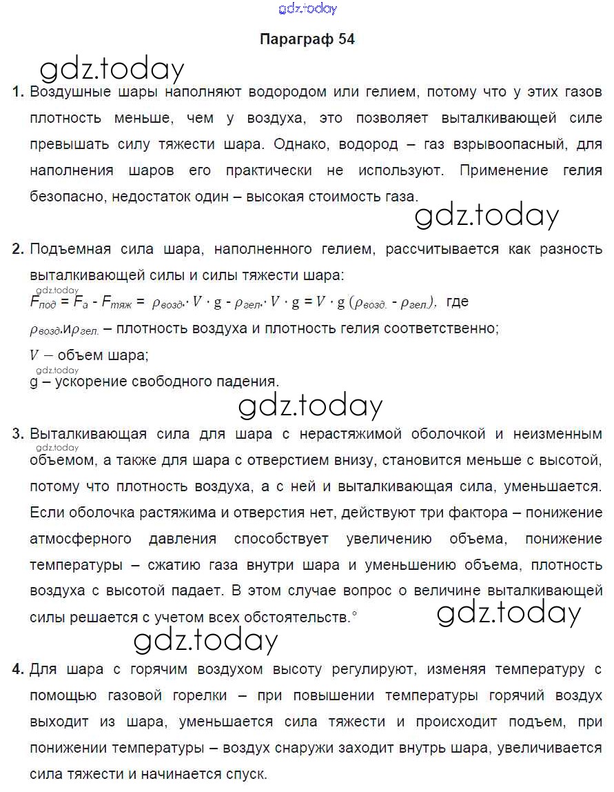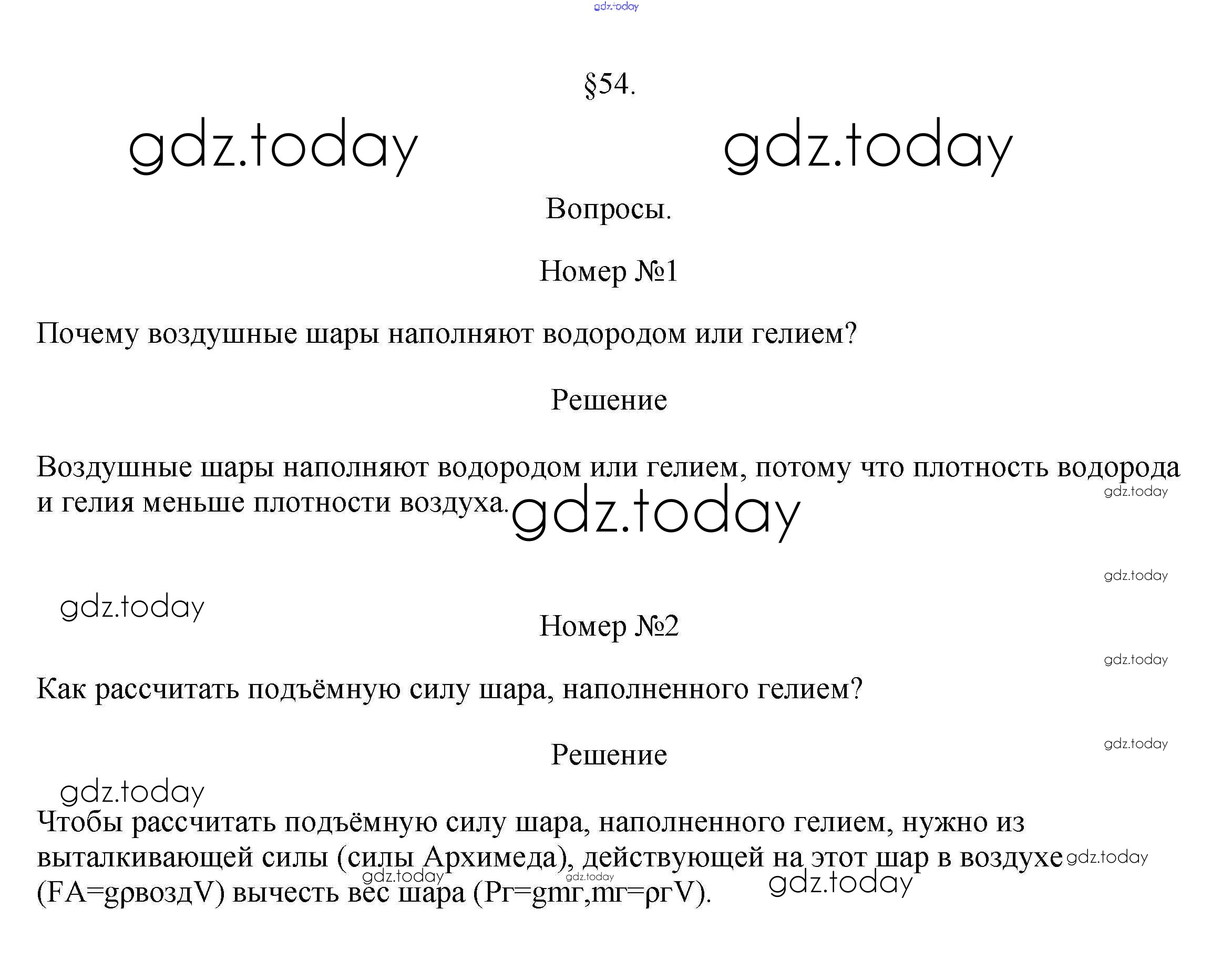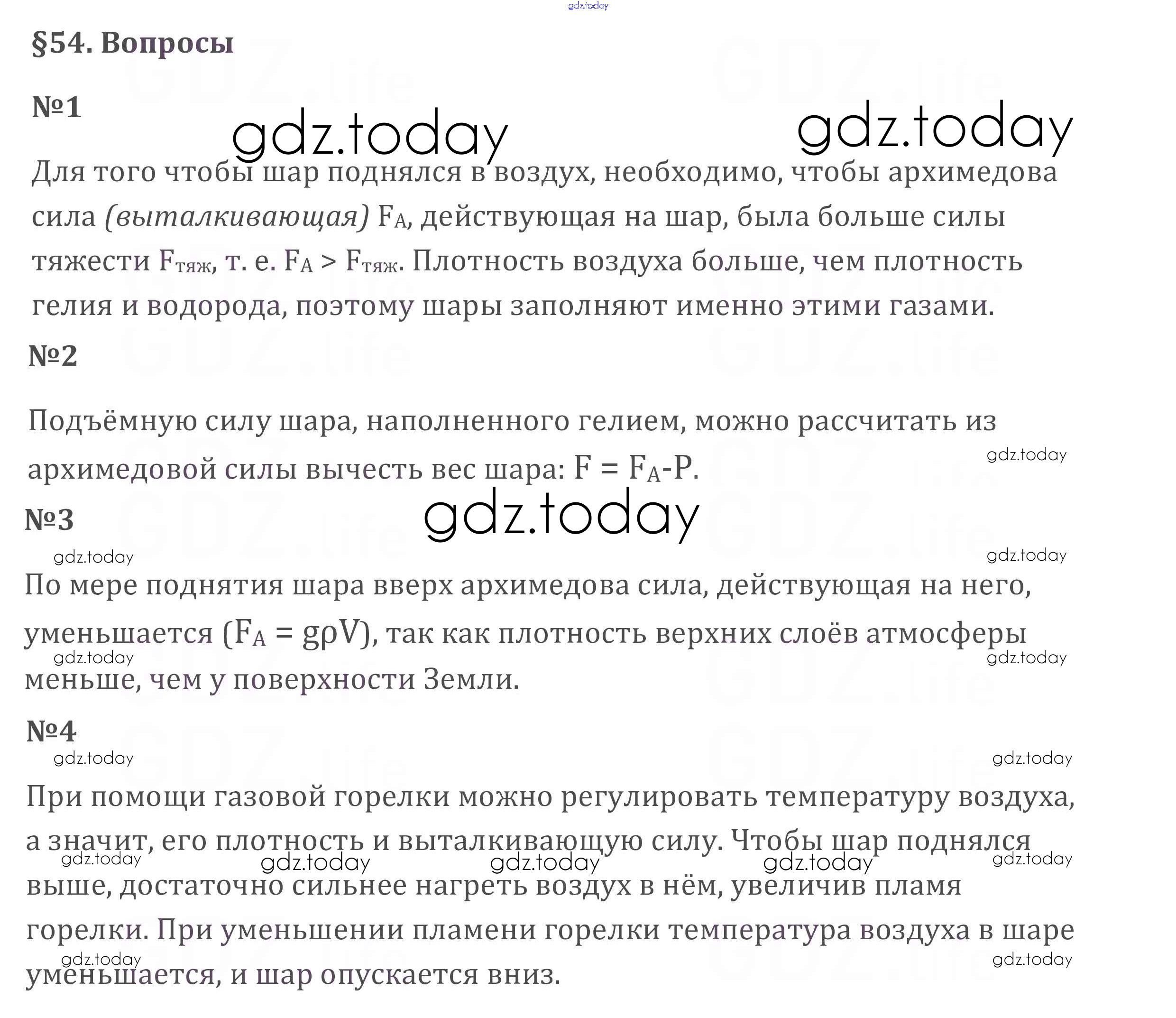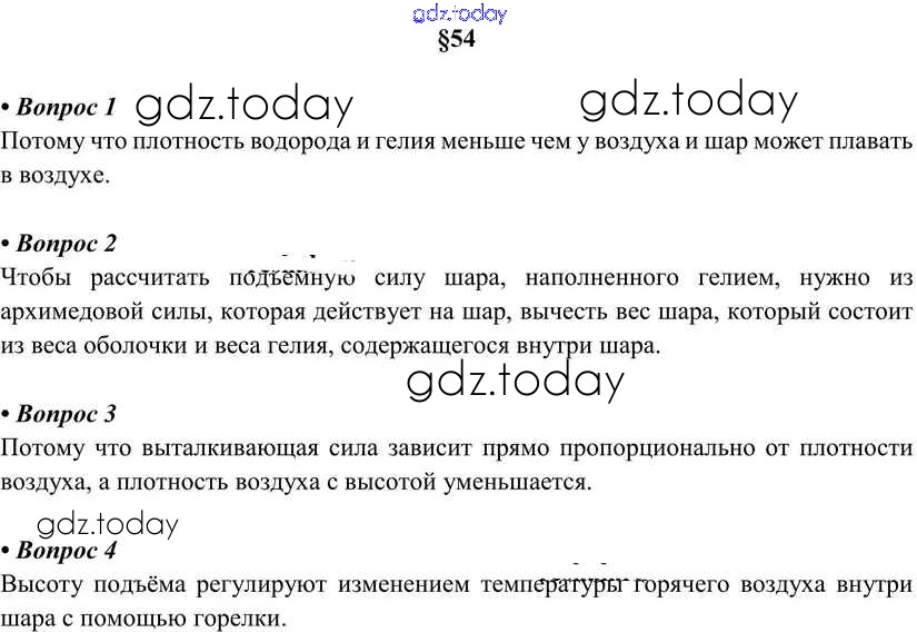 Ответы к Вопросы. Параграфы Решение к новому изданию (бело-красный учебник) §54 Учебнику по Физике для 7 класса Перышкин Дрофа Вертикаль 2016