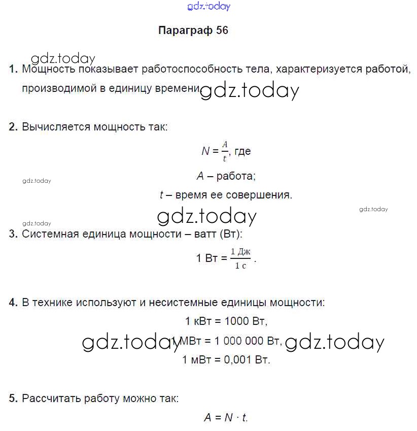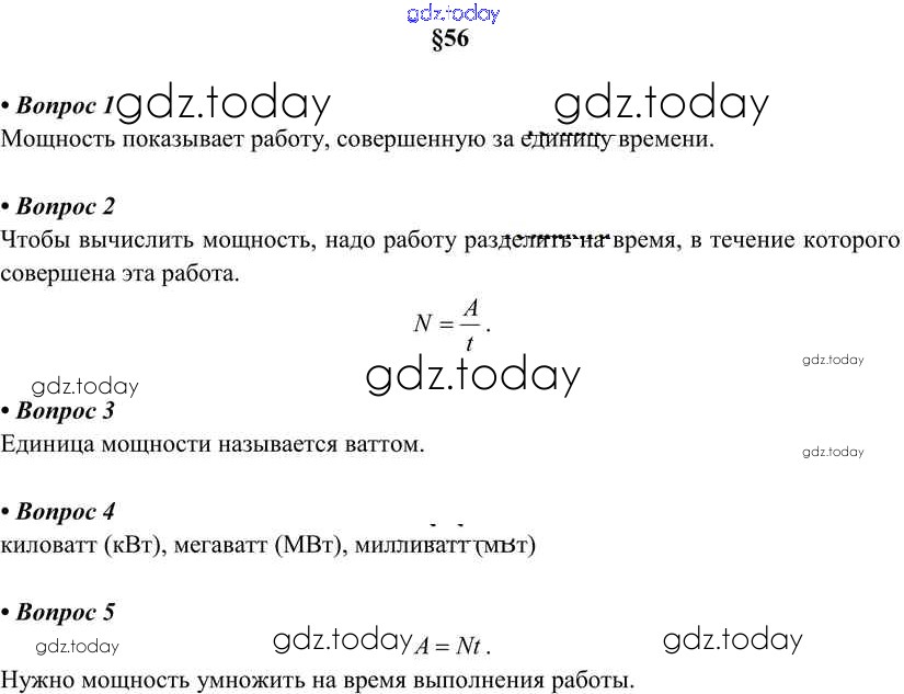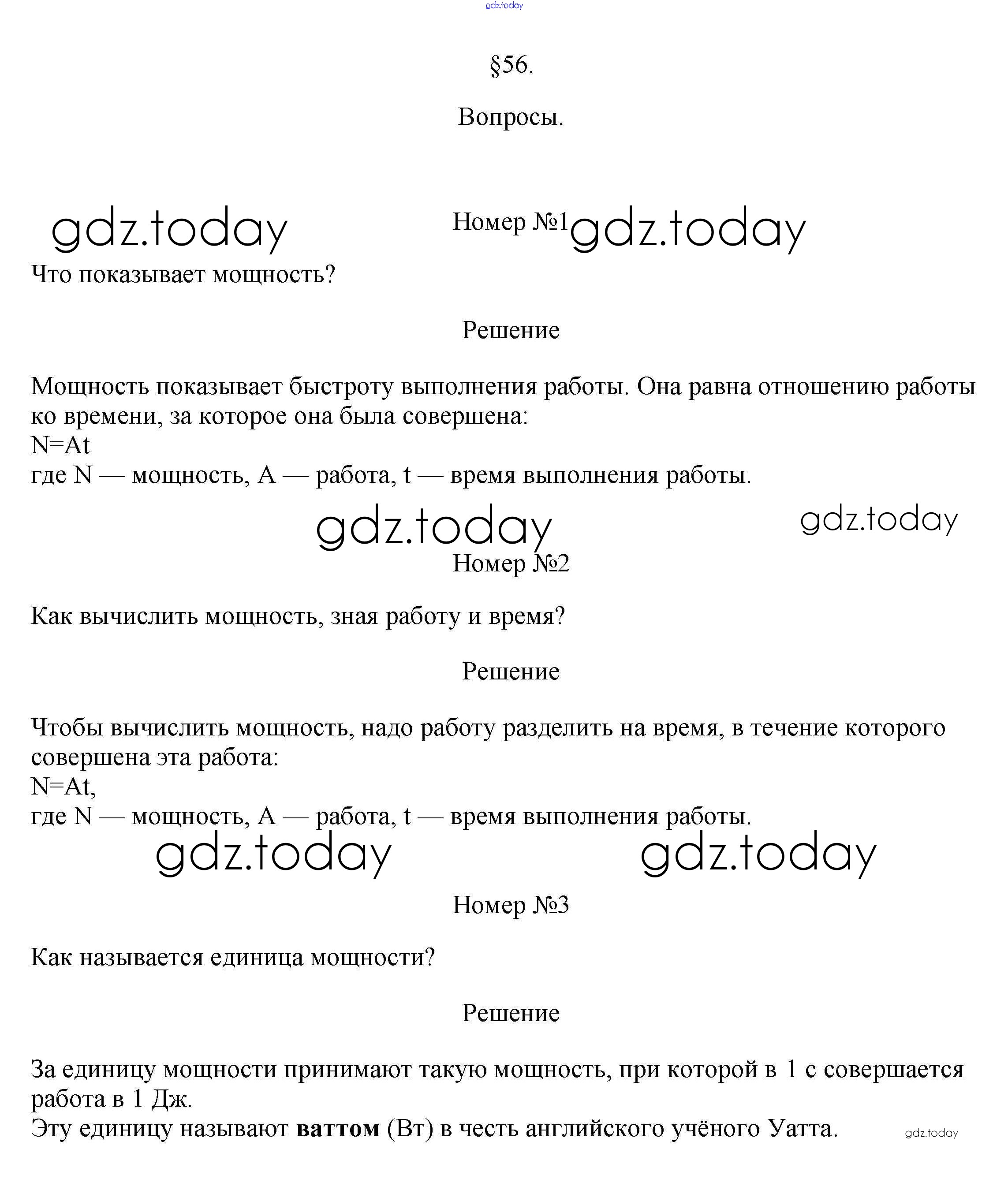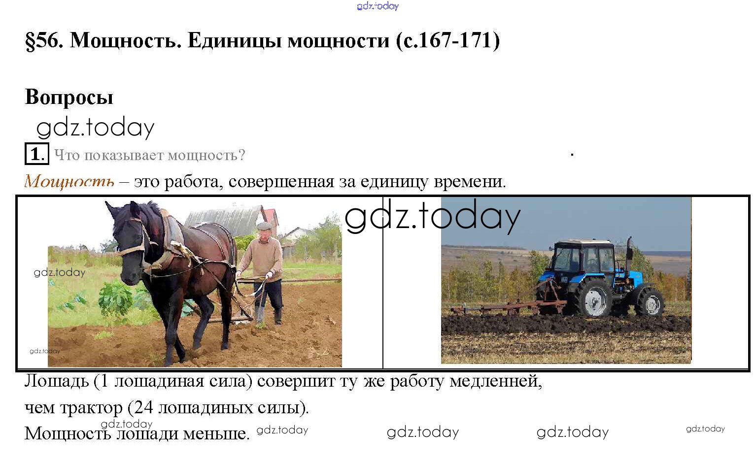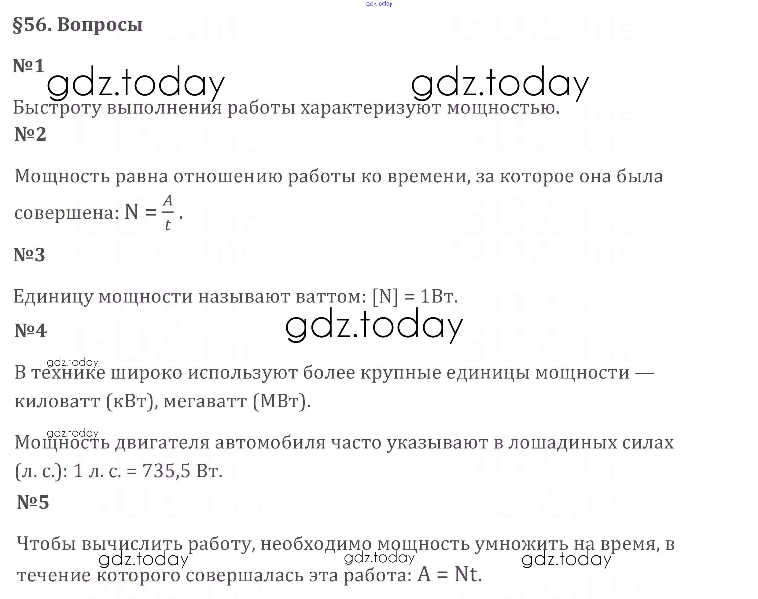 Ответы к Вопросы. Параграфы Решение к новому изданию (бело-красный учебник) §56 Учебнику по Физике для 7 класса Перышкин Дрофа Вертикаль 2016