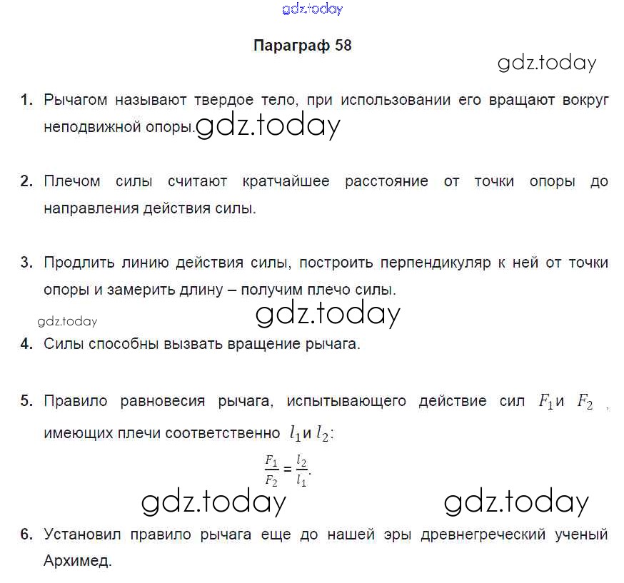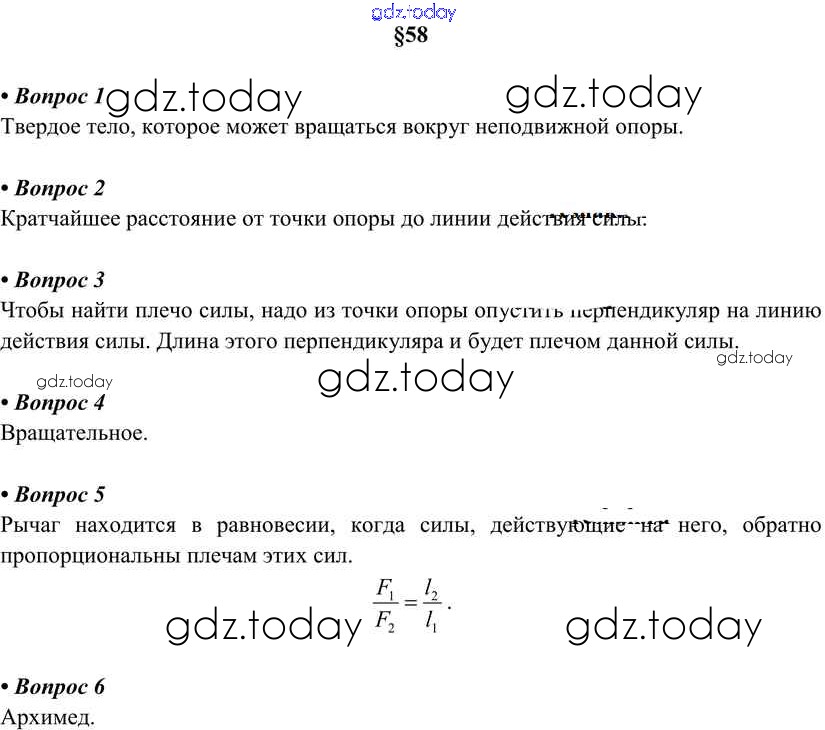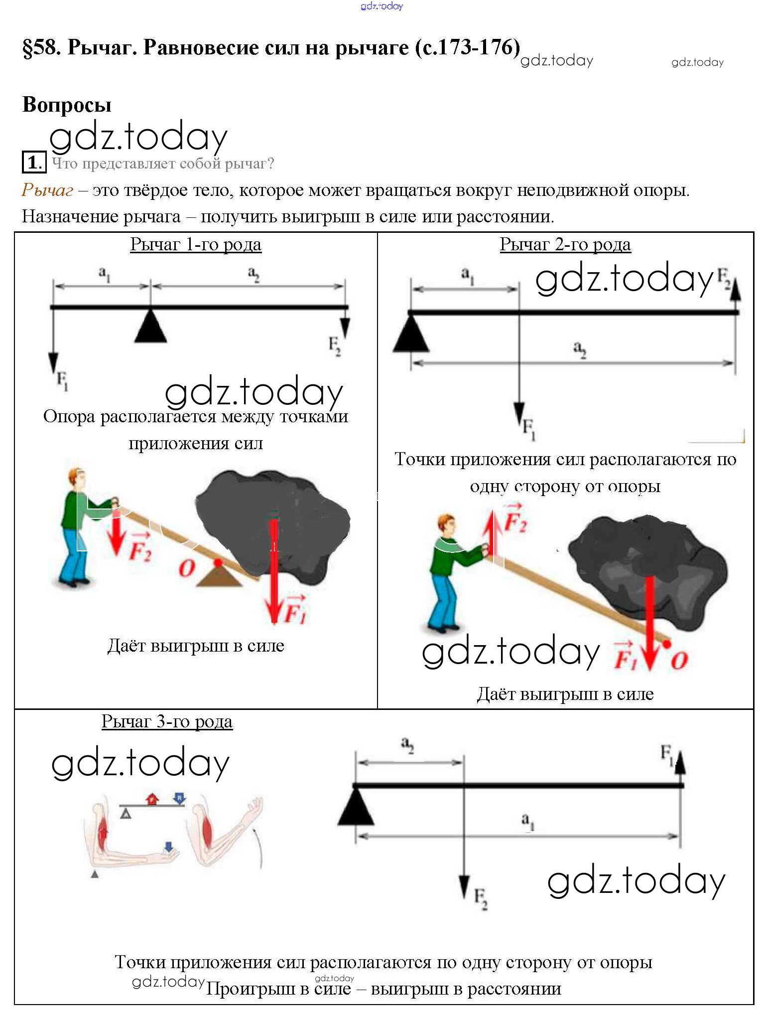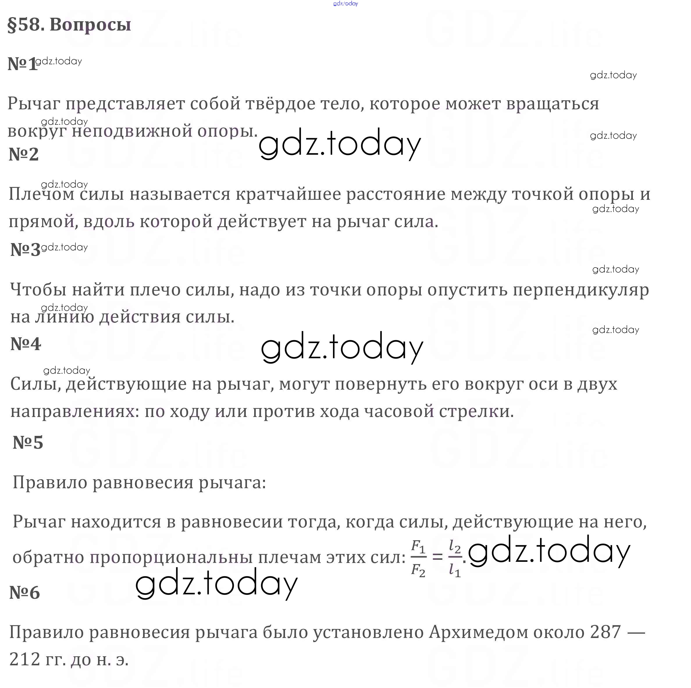 Ответы к Вопросы. Параграфы Решение к новому изданию (бело-красный учебник) §58 Учебнику по Физике для 7 класса Перышкин Дрофа Вертикаль 2016