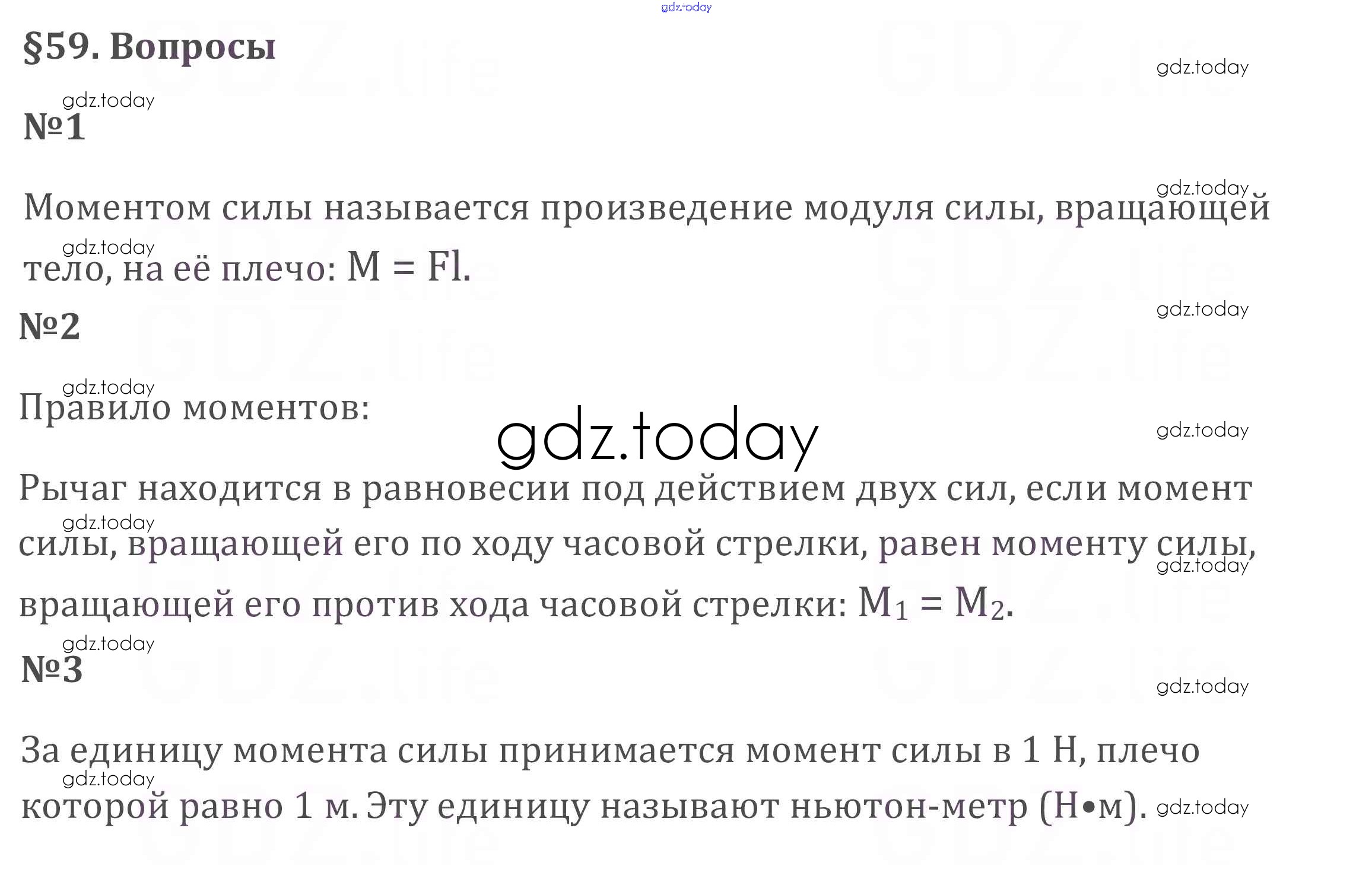Ответы к Вопросы. Параграфы Решение к новому изданию (бело-красный учебник) §59 Учебнику по Физике для 7 класса Перышкин Дрофа Вертикаль 2016