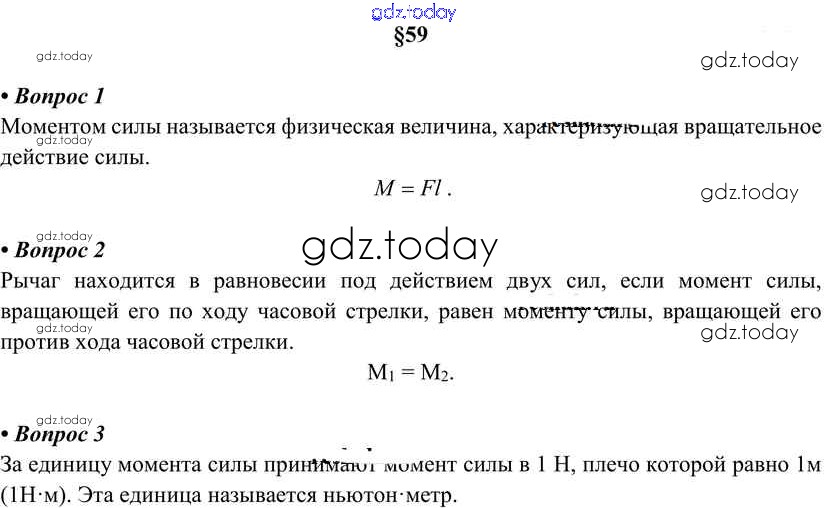 На страницах сайта gdz.today вы найдете учебный и вспомогательный материал, направленный на улучшения знаний школьной программы. ГДЗ - онлайн мир знаний Вопросы. Параграфы Решение к новому изданию (бело-красный учебник) §59 Учебнику по Физике для 7 класса Перышкин Дрофа Вертикаль 2016