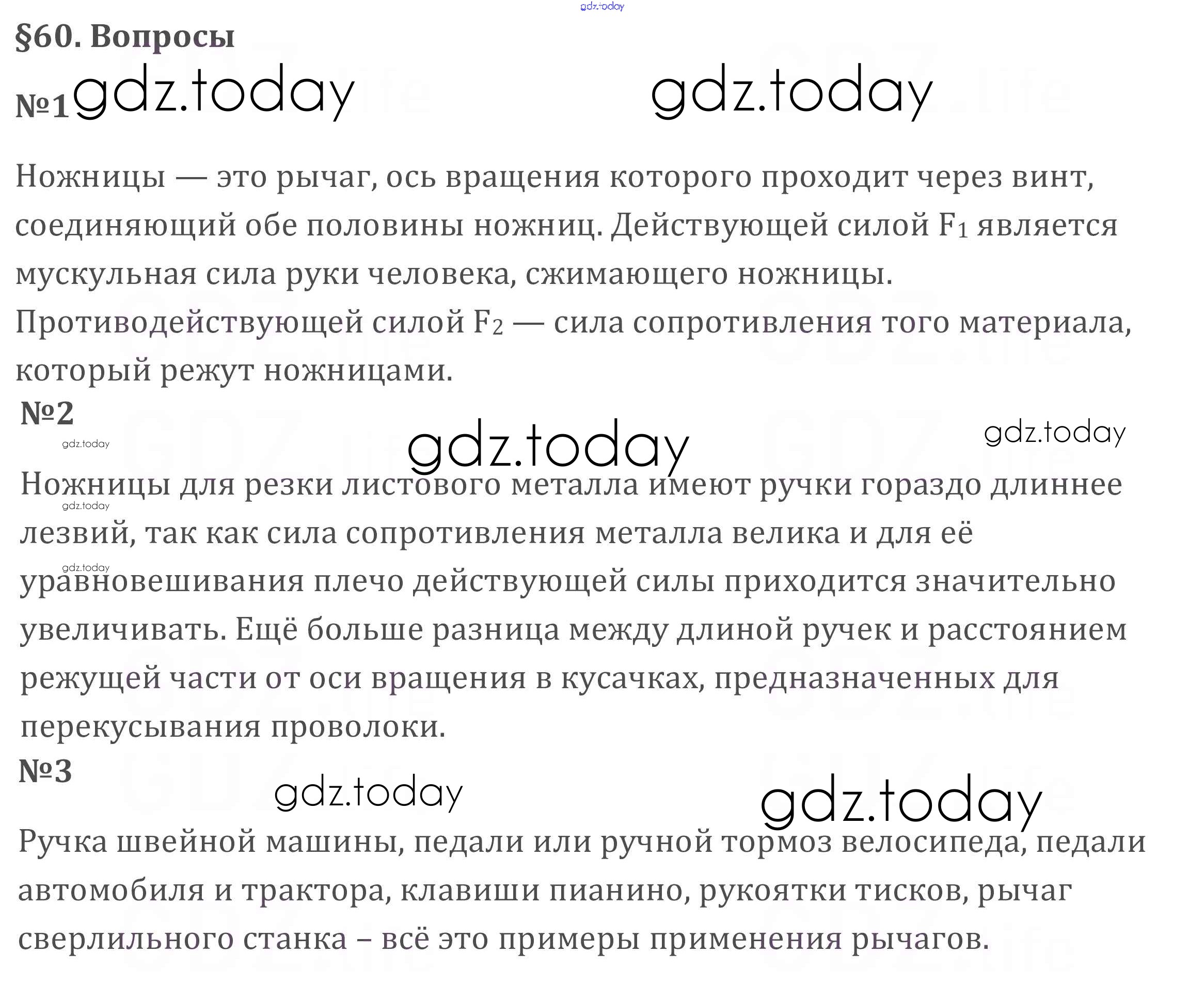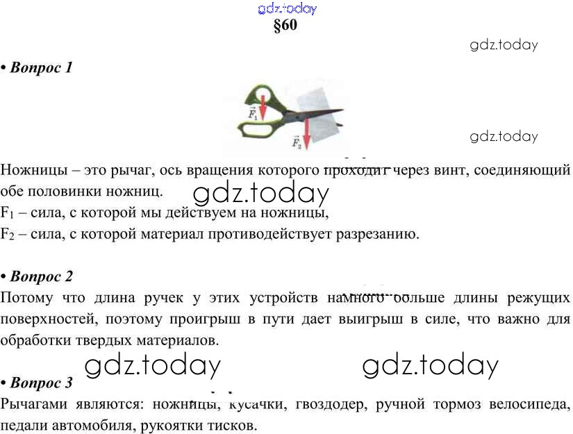 На страницах сайта gdz.today вы найдете учебный и вспомогательный материал, направленный на улучшения знаний школьной программы. ГДЗ - онлайн мир знаний Вопросы. Параграфы Решение к новому изданию (бело-красный учебник) §60 Учебнику по Физике для 7 класса Перышкин Дрофа Вертикаль 2016
