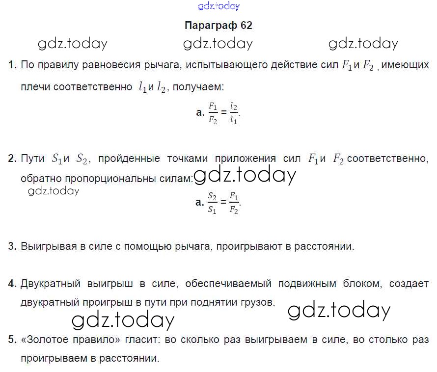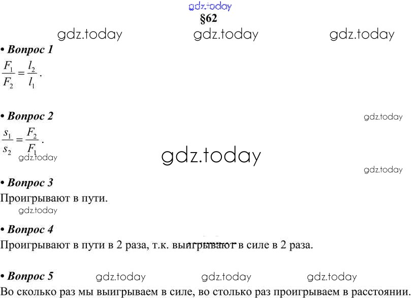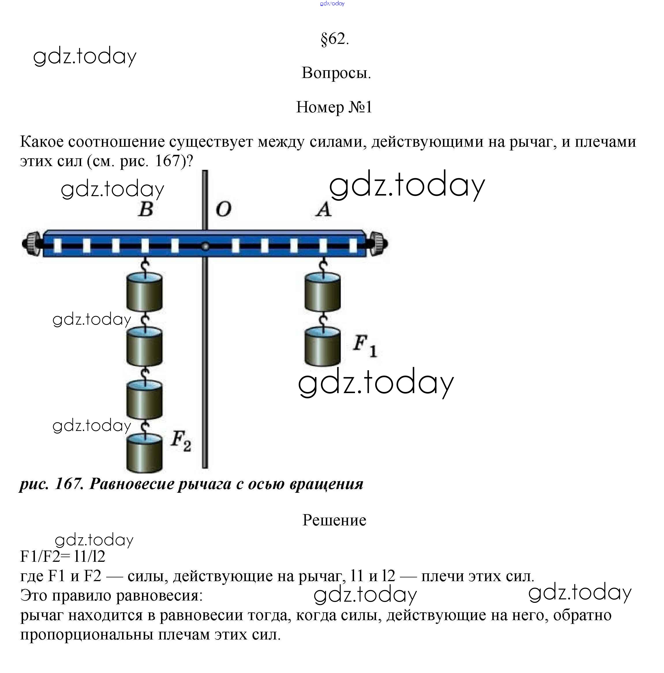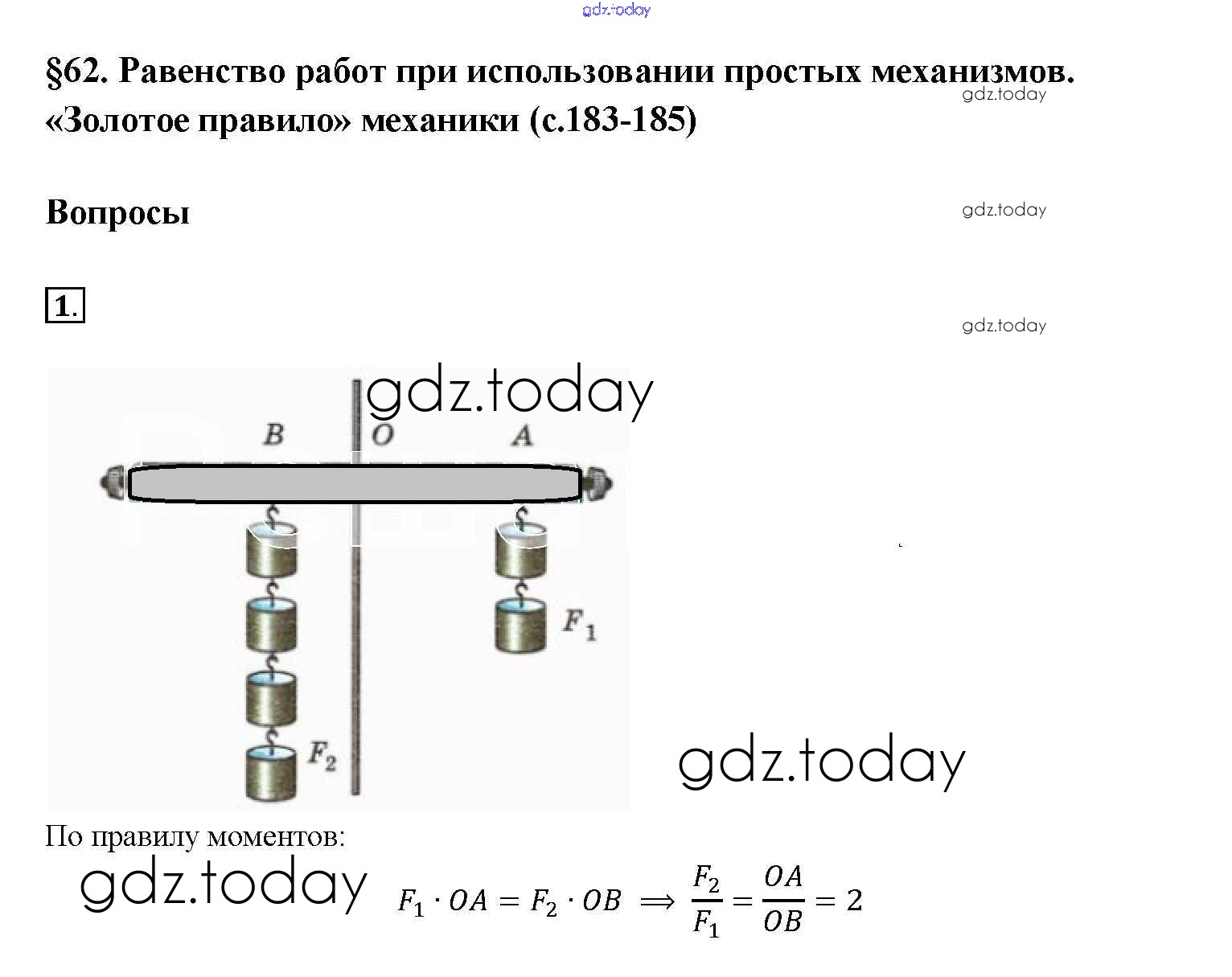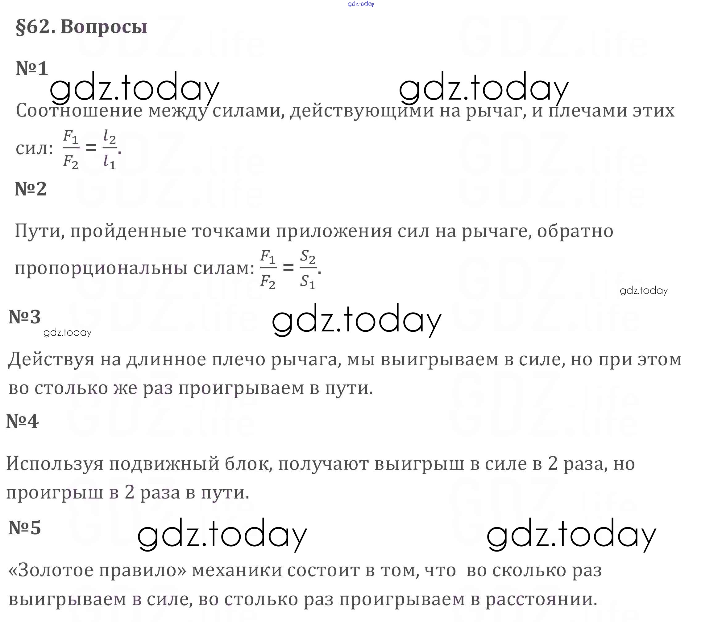 Ответы к Вопросы. Параграфы Решение к новому изданию (бело-красный учебник) §62 Учебнику по Физике для 7 класса Перышкин Дрофа Вертикаль 2016
