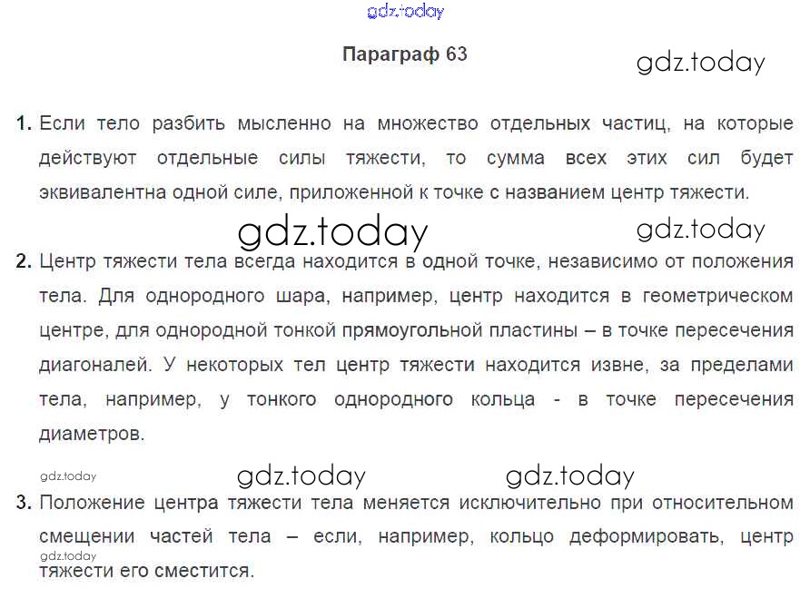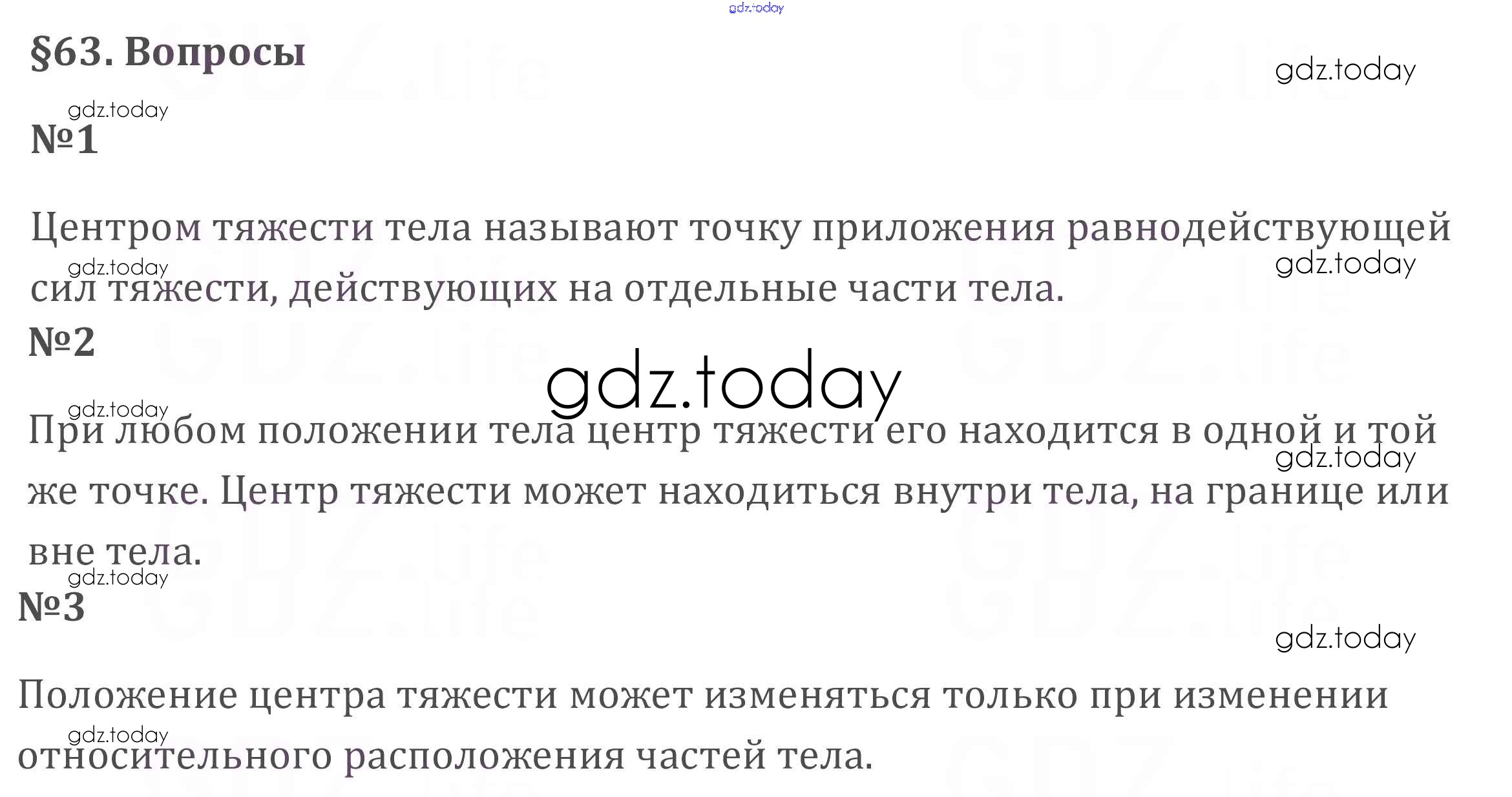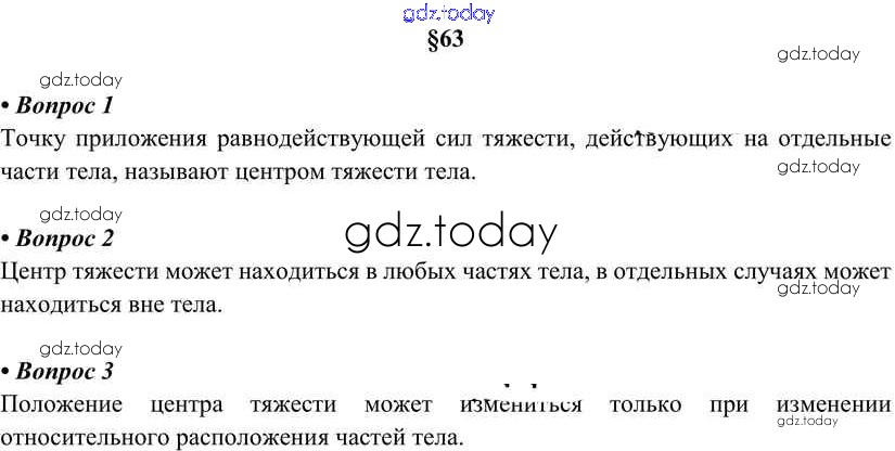 На страницах сайта gdz.today вы найдете учебный и вспомогательный материал, направленный на улучшения знаний школьной программы. ГДЗ - онлайн мир знаний Вопросы. Параграфы Решение к новому изданию (бело-красный учебник) §63 Учебнику по Физике для 7 класса Перышкин Дрофа Вертикаль 2016