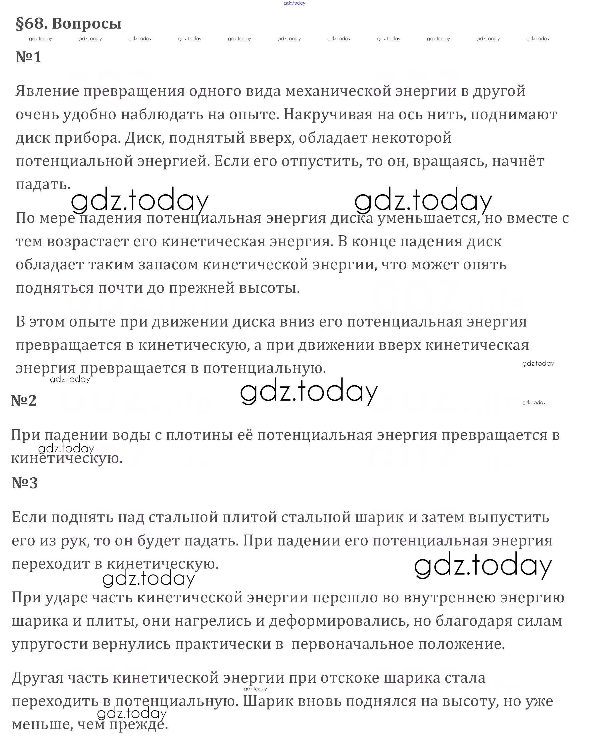 Ответы к Вопросы. Параграфы Решение к новому изданию (бело-красный учебник) §68 Учебнику по Физике для 7 класса Перышкин Дрофа Вертикаль 2016