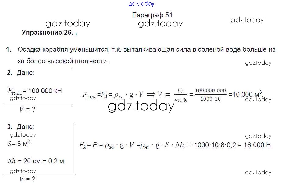 Ответы к Упражнения Решение к старому изданию (синий учебник) 26 Учебнику по Физике для 7 класса Перышкин Дрофа Вертикаль 2016