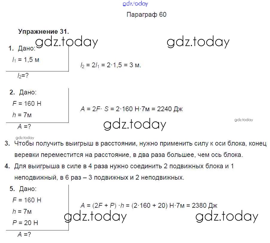 На страницах сайта gdz.today вы найдете учебный и вспомогательный материал, направленный на улучшения знаний школьной программы. ГДЗ - онлайн мир знаний Упражнения Решение к старому изданию (синий учебник) 31 Учебнику по Физике для 7 класса Перышкин Дрофа Вертикаль 2016