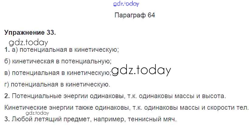 На страницах сайта gdz.today вы найдете учебный и вспомогательный материал, направленный на улучшения знаний школьной программы. ГДЗ - онлайн мир знаний Упражнения Решение к старому изданию (синий учебник) 33 Учебнику по Физике для 7 класса Перышкин Дрофа Вертикаль 2016