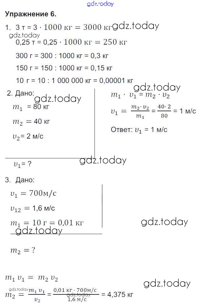 Ответы к Упражнения Решение к старому изданию (синий учебник) 6 Учебнику по Физике для 7 класса Перышкин Дрофа Вертикаль 2016