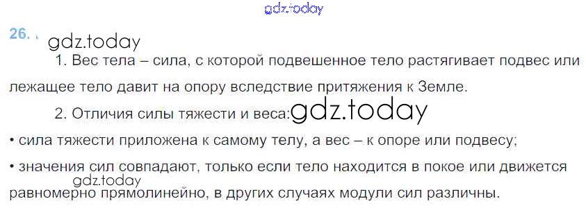 На страницах сайта gdz.today вы найдете учебный и вспомогательный материал, направленный на улучшения знаний школьной программы. ГДЗ - онлайн мир знаний Вопросы. Параграфы Решение к старому изданию (синий учебник) §26 Учебнику по Физике для 7 класса Перышкин Дрофа Вертикаль 2016