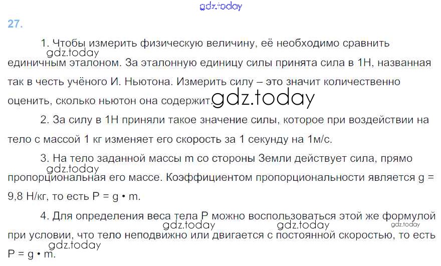 Ответы к Вопросы. Параграфы Решение к старому изданию (синий учебник) §27 Учебнику по Физике для 7 класса Перышкин Дрофа Вертикаль 2016