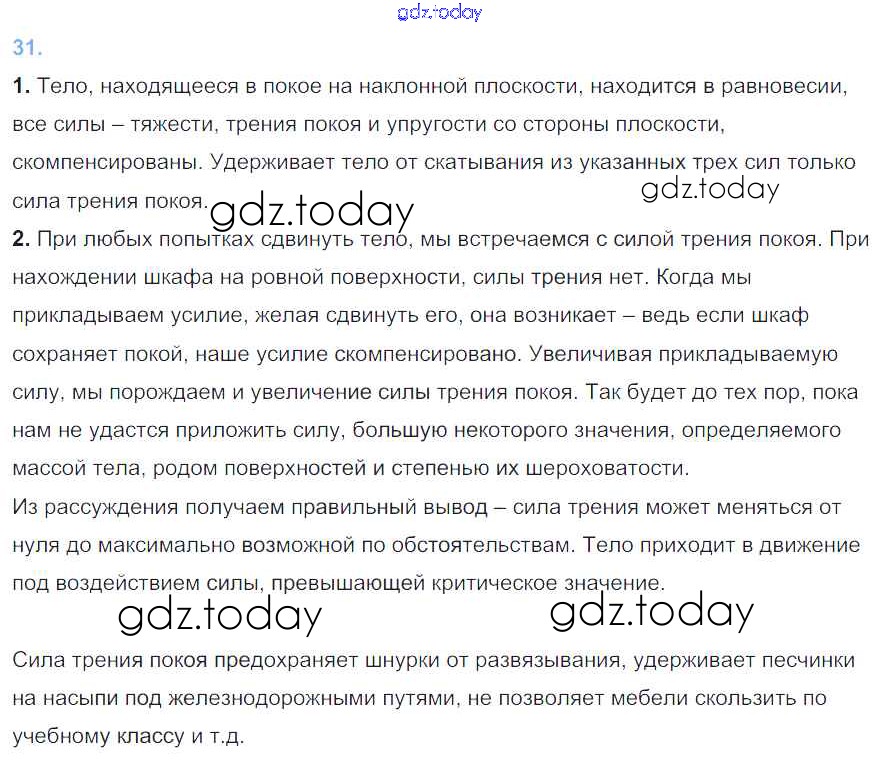 Ответы к Вопросы. Параграфы Решение к старому изданию (синий учебник) §31 Учебнику по Физике для 7 класса Перышкин Дрофа Вертикаль 2016