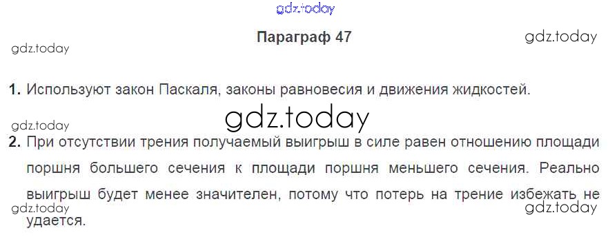 Ответы к Вопросы. Параграфы Решение к старому изданию (синий учебник) §47 Учебнику по Физике для 7 класса Перышкин Дрофа Вертикаль 2016