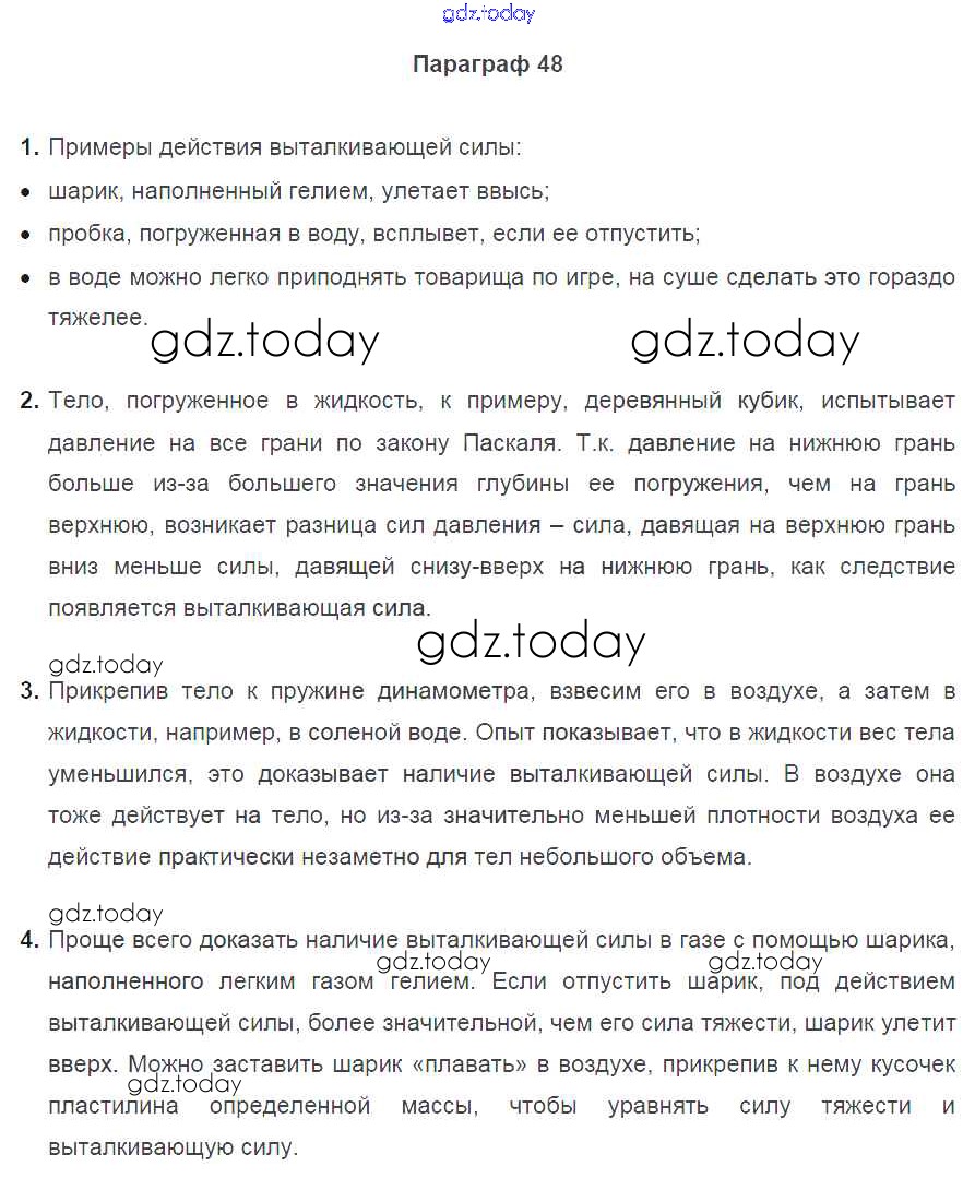Ответы к Вопросы. Параграфы Решение к старому изданию (синий учебник) §48 Учебнику по Физике для 7 класса Перышкин Дрофа Вертикаль 2016