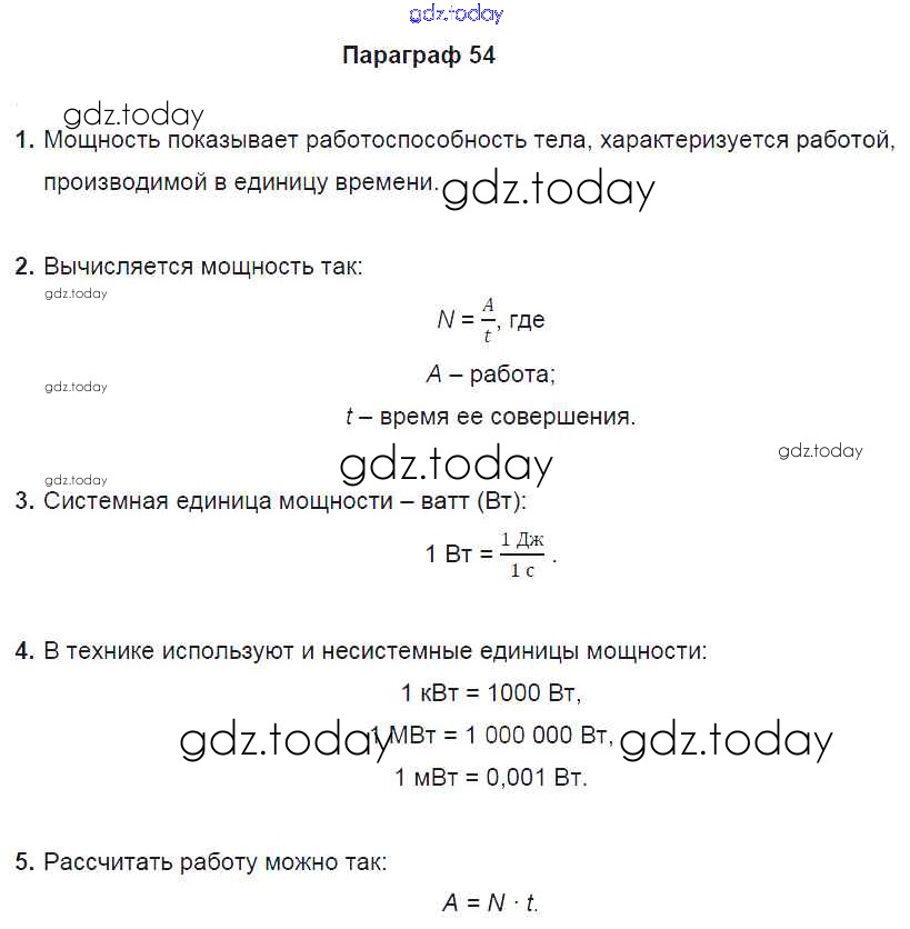 Ответы к Вопросы. Параграфы Решение к старому изданию (синий учебник) §54 Учебнику по Физике для 7 класса Перышкин Дрофа Вертикаль 2016