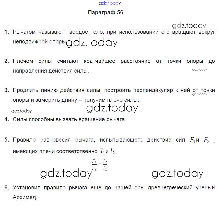 Ответы к Вопросы. Параграфы Решение к старому изданию (синий учебник) §56 Учебнику по Физике для 7 класса Перышкин Дрофа Вертикаль 2016