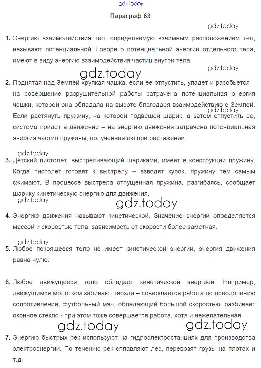 Ответы к Вопросы. Параграфы Решение к старому изданию (синий учебник) §63 Учебнику по Физике для 7 класса Перышкин Дрофа Вертикаль 2016