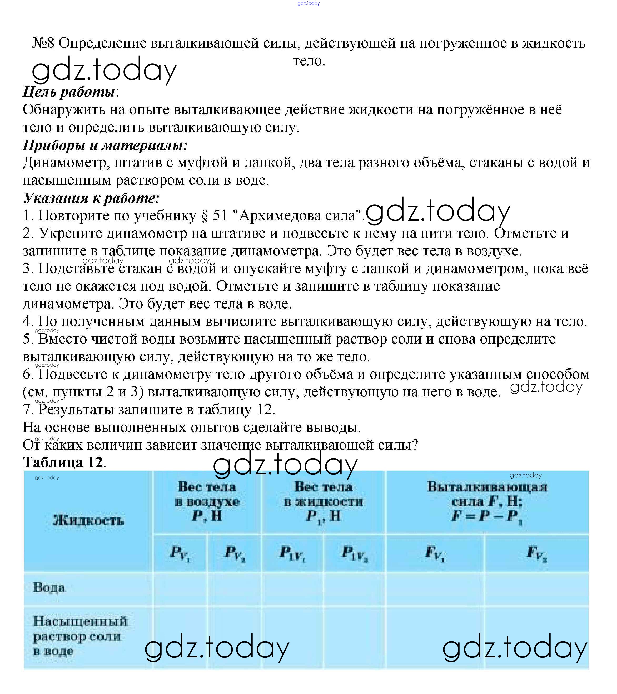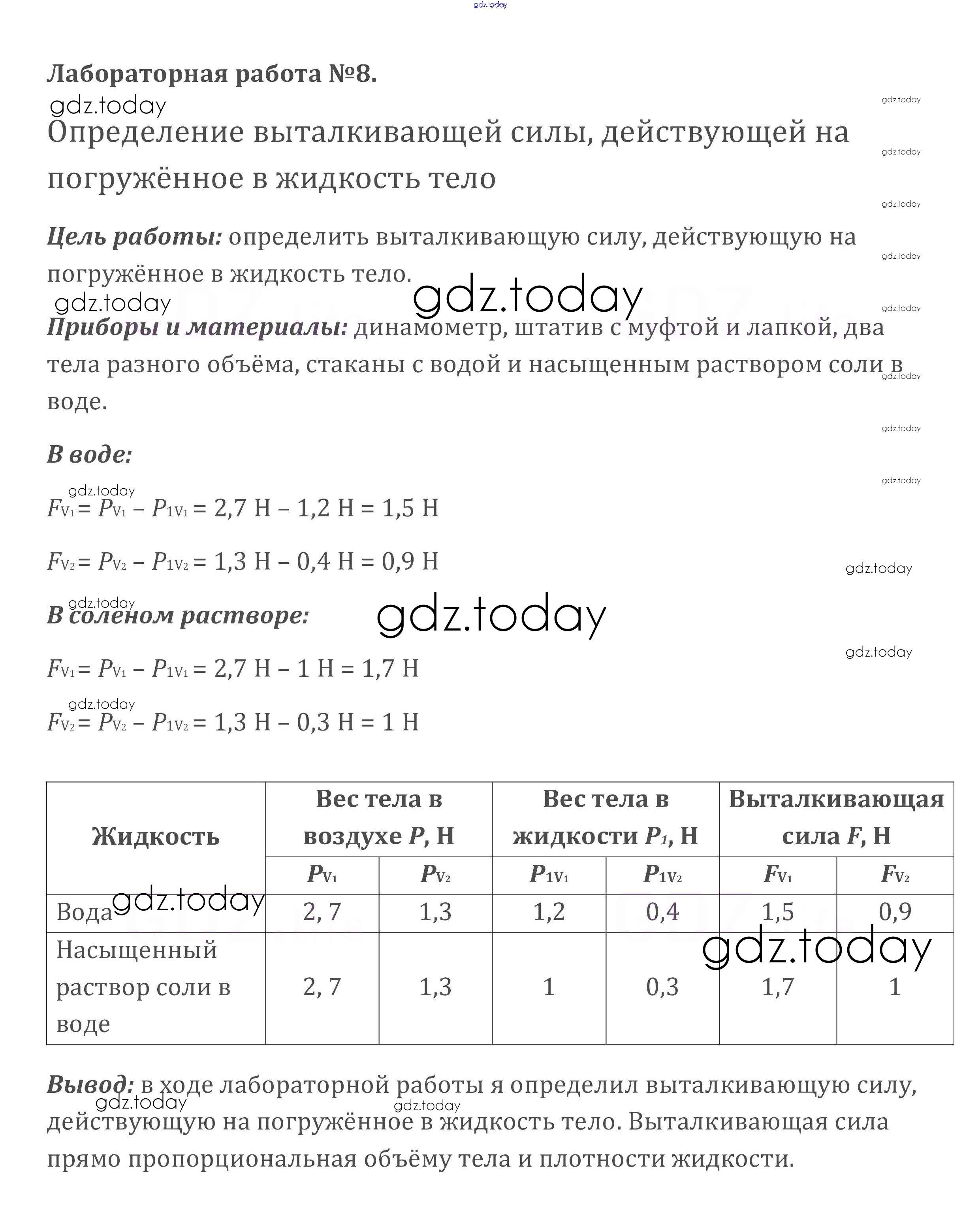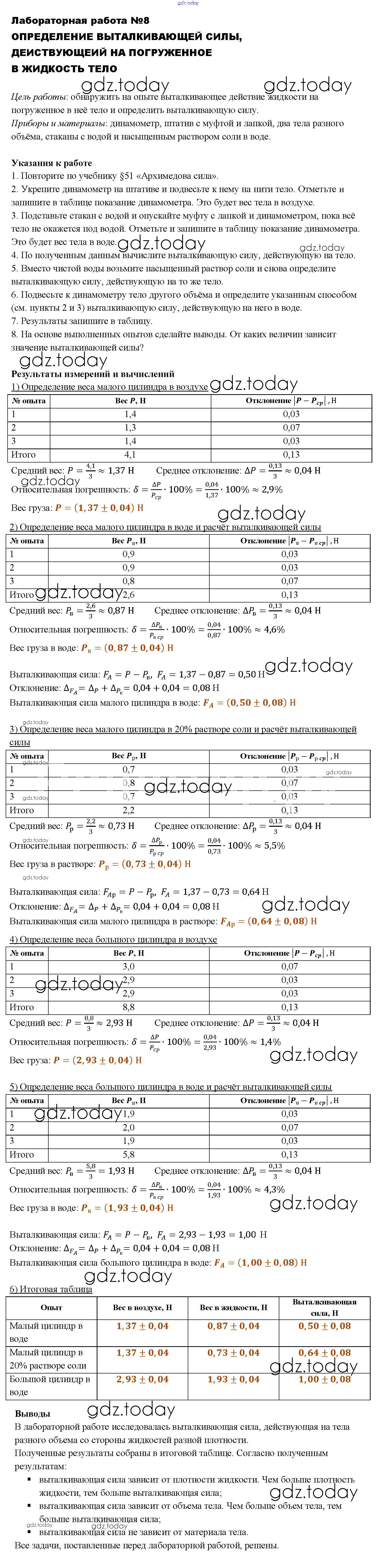 Ответы к Решение к лабораторным работам 8 Учебнику по Физике для 7 класса Перышкин Дрофа Вертикаль 2016