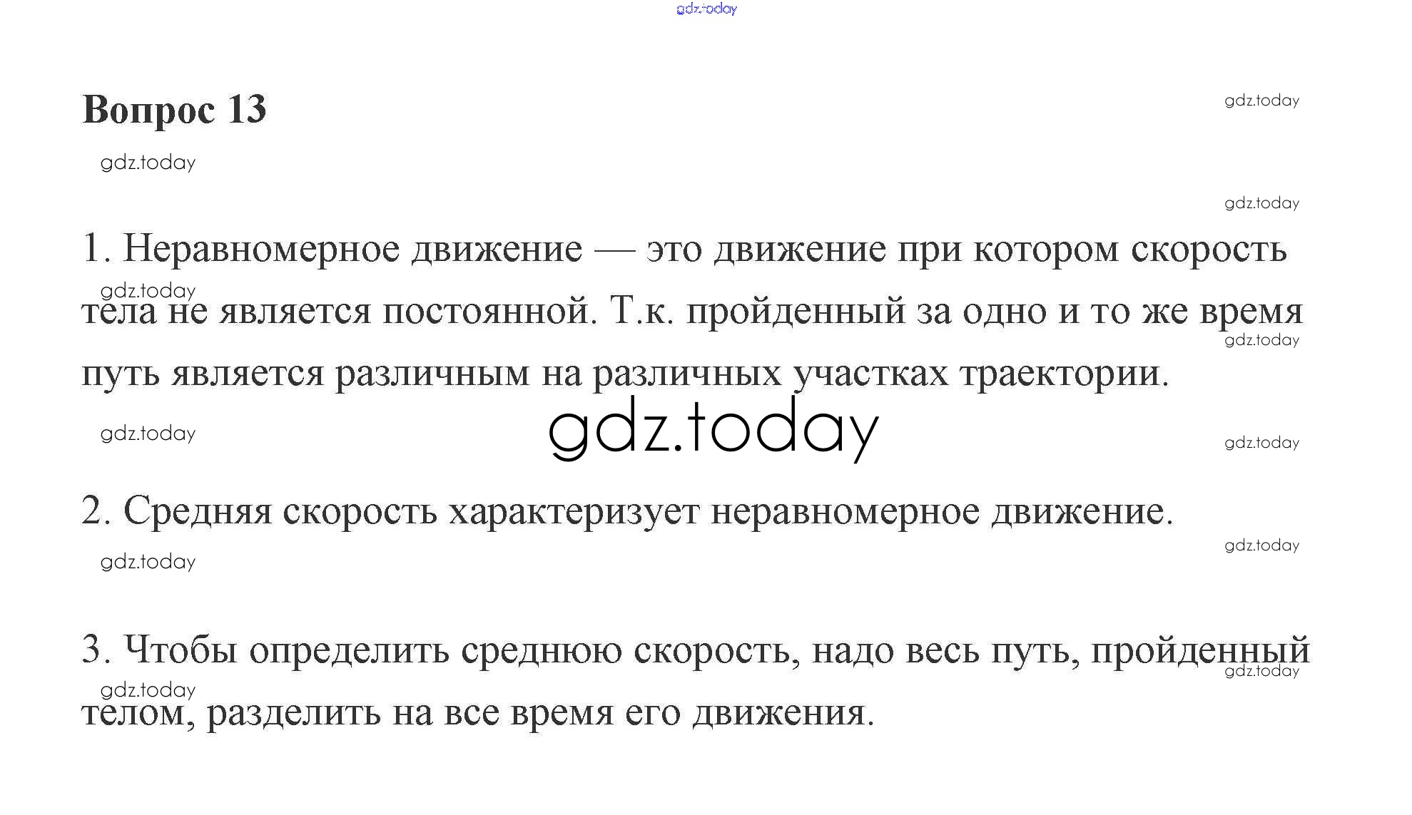 На страницах сайта gdz.today вы найдете учебный и вспомогательный материал, направленный на улучшения знаний школьной программы. ГДЗ - онлайн мир знаний Решение к вопросам 13 Учебнику по Физике для 7 класса Пурышева, Важеевская Дрофа 2011