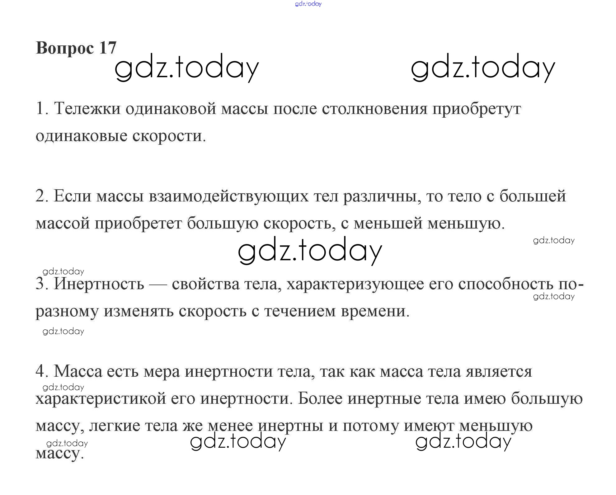 На страницах сайта gdz.today вы найдете учебный и вспомогательный материал, направленный на улучшения знаний школьной программы. ГДЗ - онлайн мир знаний Решение к вопросам 17 Учебнику по Физике для 7 класса Пурышева, Важеевская Дрофа 2011