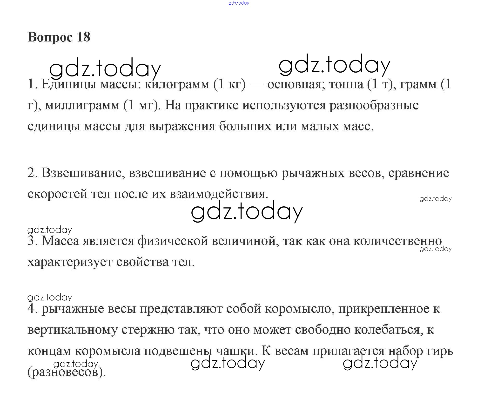 На страницах сайта gdz.today вы найдете учебный и вспомогательный материал, направленный на улучшения знаний школьной программы. ГДЗ - онлайн мир знаний Решение к вопросам 18 Учебнику по Физике для 7 класса Пурышева, Важеевская Дрофа 2011