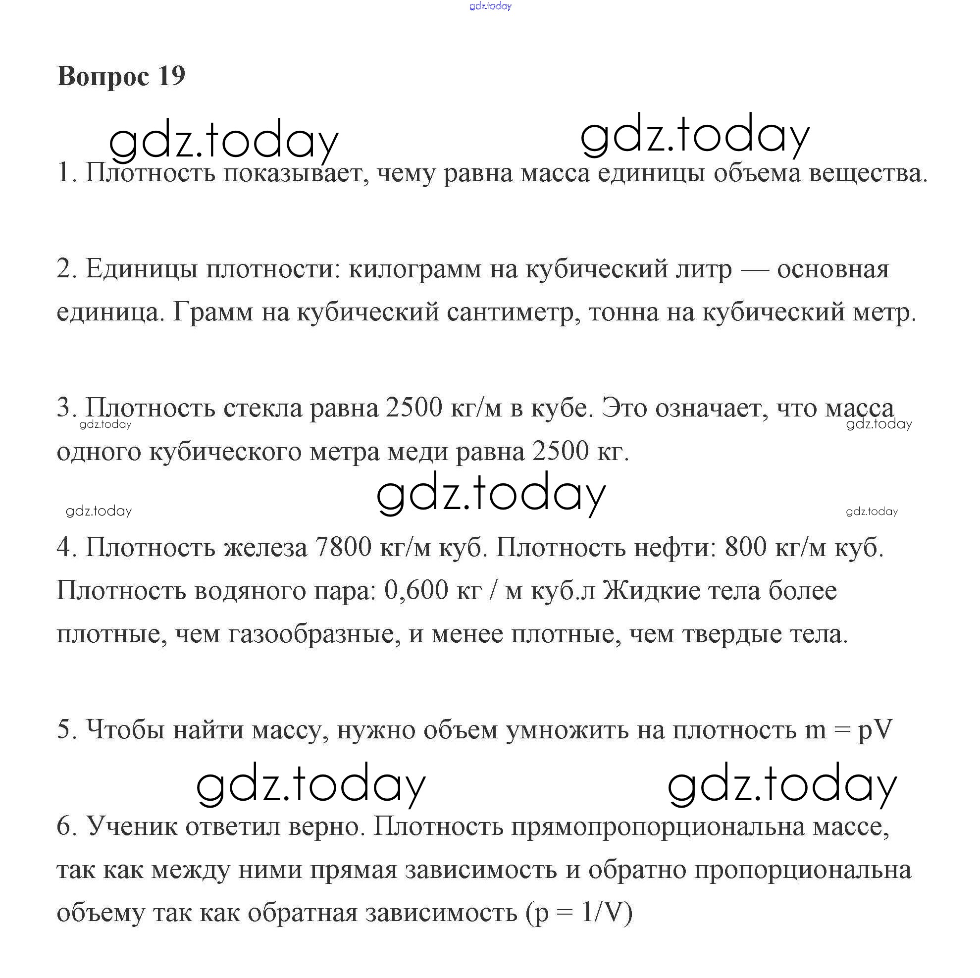 На страницах сайта gdz.today вы найдете учебный и вспомогательный материал, направленный на улучшения знаний школьной программы. ГДЗ - онлайн мир знаний Решение к вопросам 19 Учебнику по Физике для 7 класса Пурышева, Важеевская Дрофа 2011